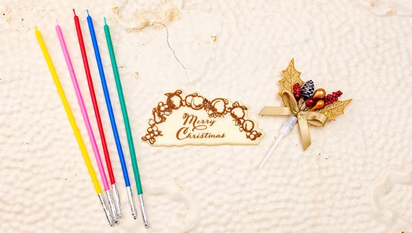 クリスマスオーナメント・ロウソク5本・チョコレートプレートが付いています。