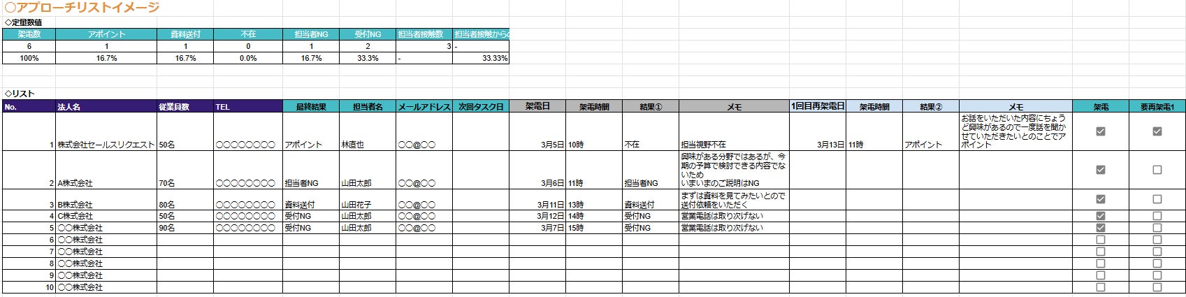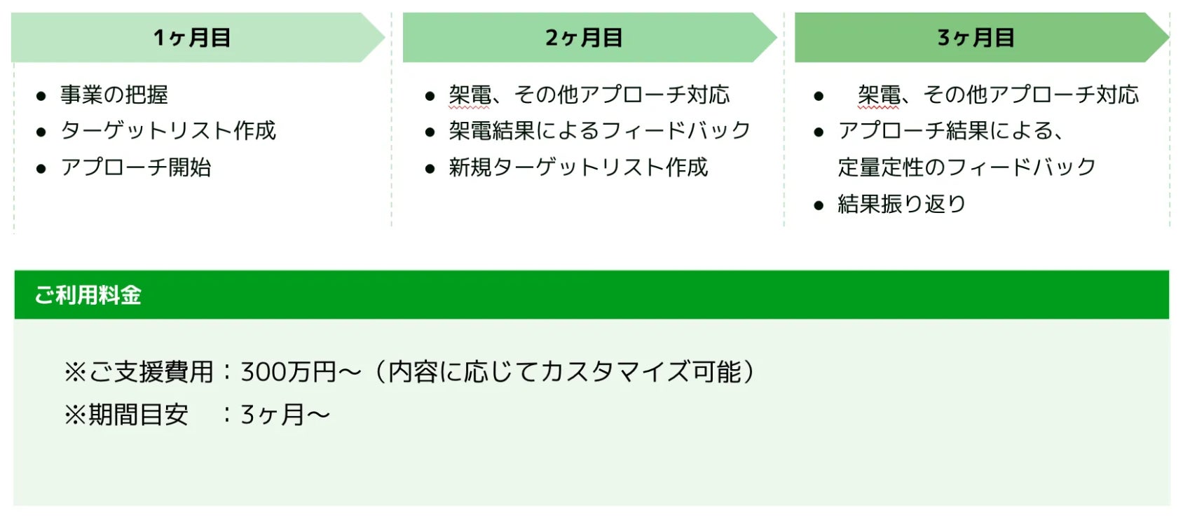 ターゲットに向けた事前調査に基づく、1to1型の高品質な新規開拓を実施