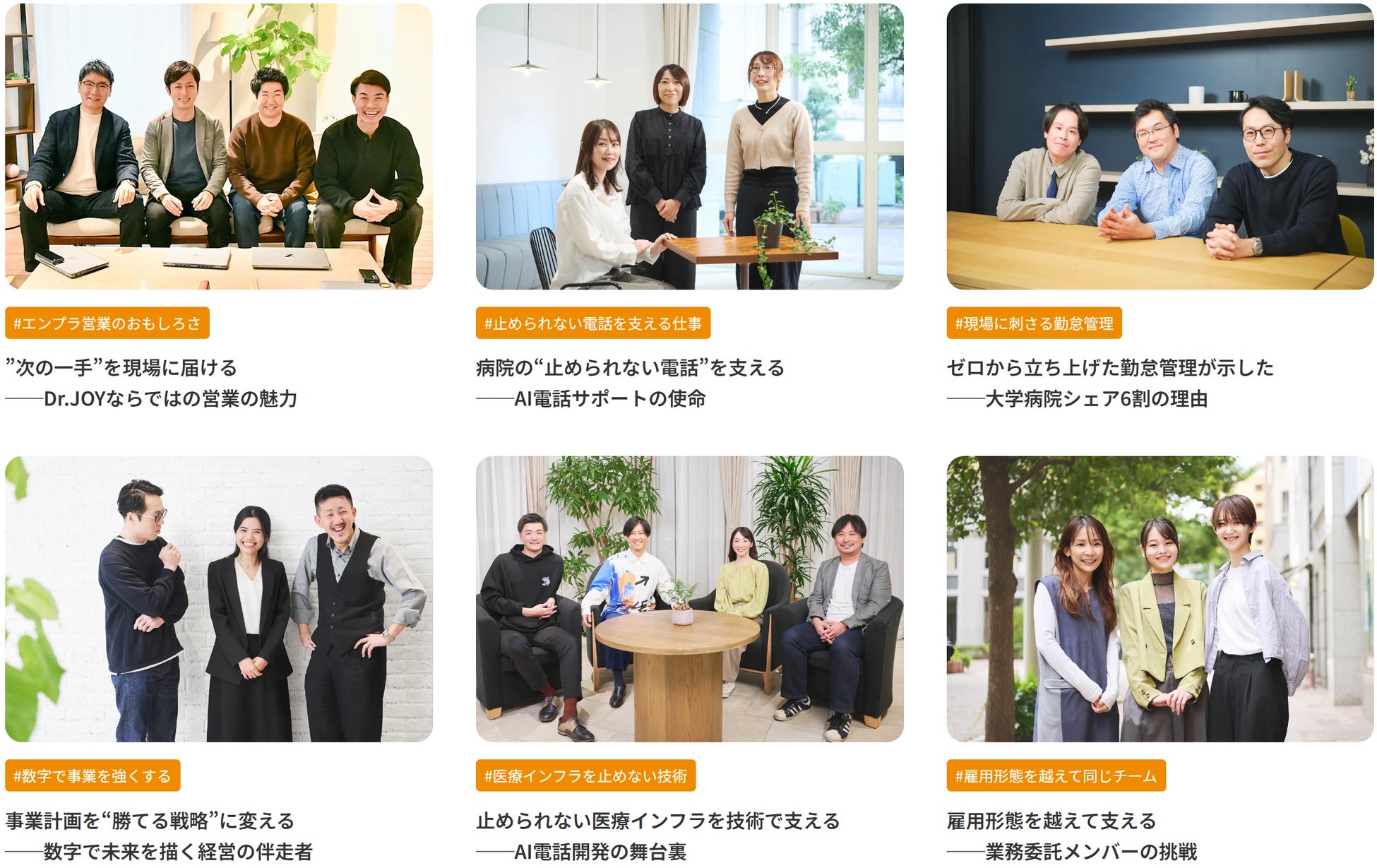 Dr.JOY株式会社(本社:東京都港区虎ノ門、代表取締役社長・医師:石松 宏章)は、採用サイトを全面リニューアルしました。13年目を迎え、キャリア採用の拡大に向けて、求職者の関心と当社の想いがよりマッチする場として設計しています。採用コンセプトである「AIで変える、医療の未来。~あなたのキャリアに、医療AIという選択肢を~」のもと、社員のリアルな挑戦や働き方を“見える化”し、履歴書なしでまず会える導線も強化しました。