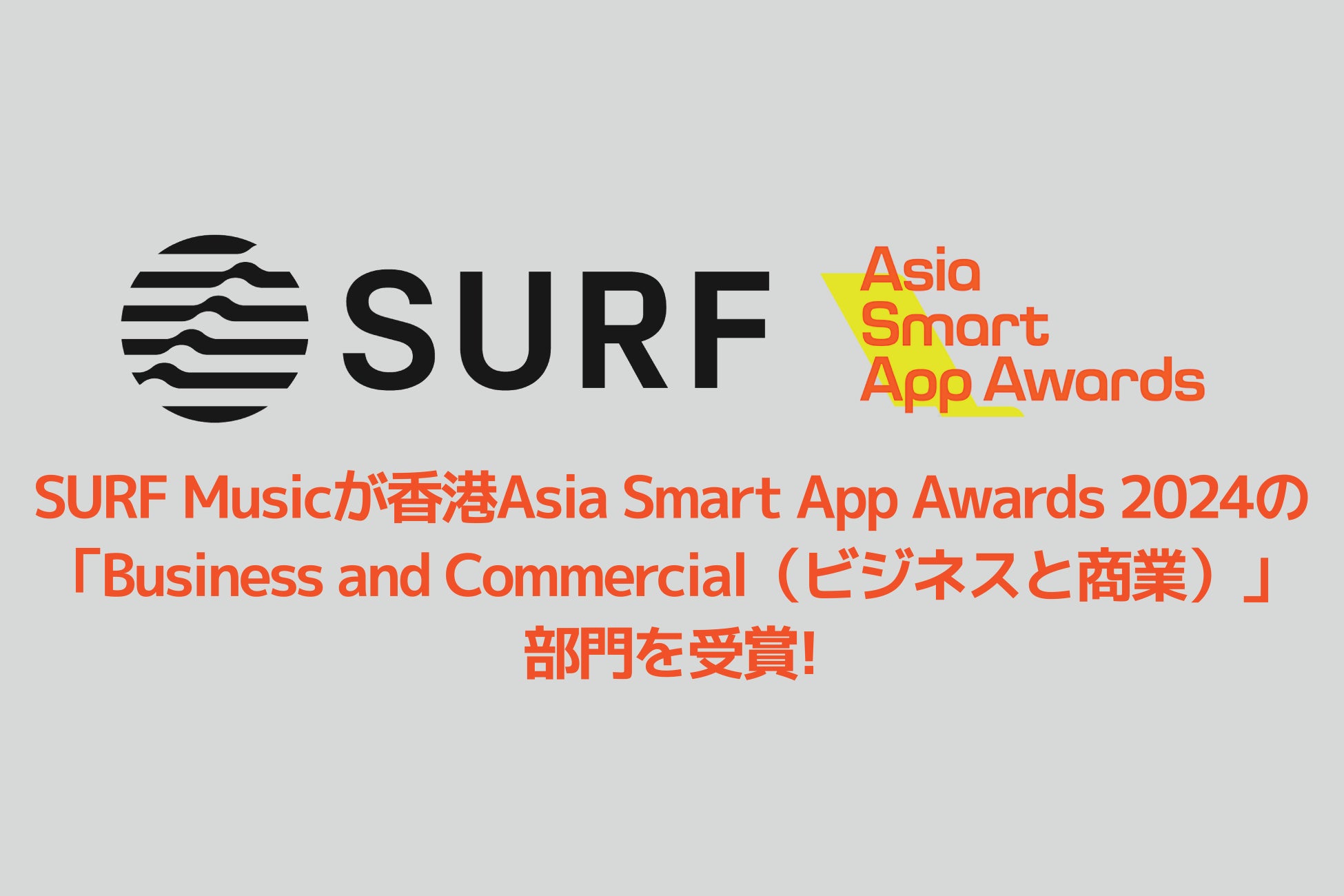 SURF Musicが香港Asia Smart App Awards 2024の「Business and Commercial(ビジネスと商業)」部門を受賞