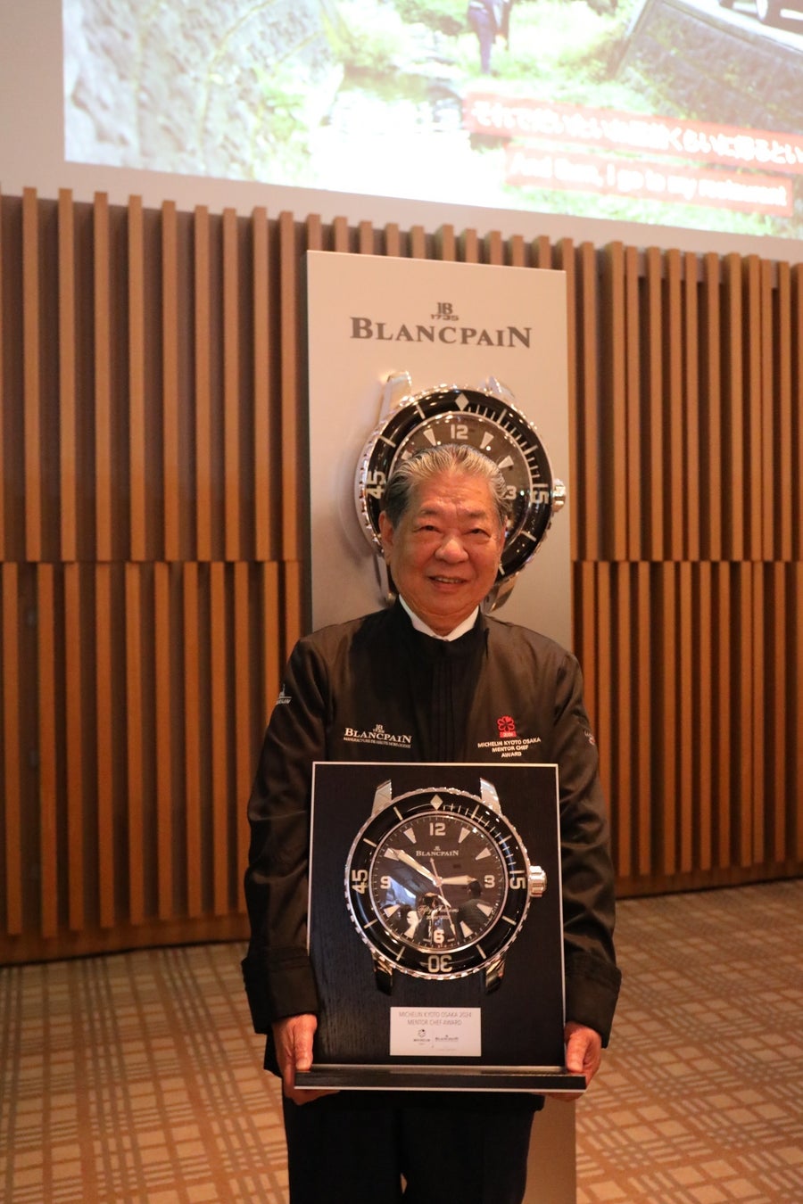 現存する世界最古のスイス時計ブランドである<ブランパン>は、4月9日に開催された「ミシュランガイド京都・大阪 2024」の発表の場にて、レストラン業界の発展に貢献する料理人・シェフを称える賞である「メンターシェフアワード」の授賞式に立ち合いました。