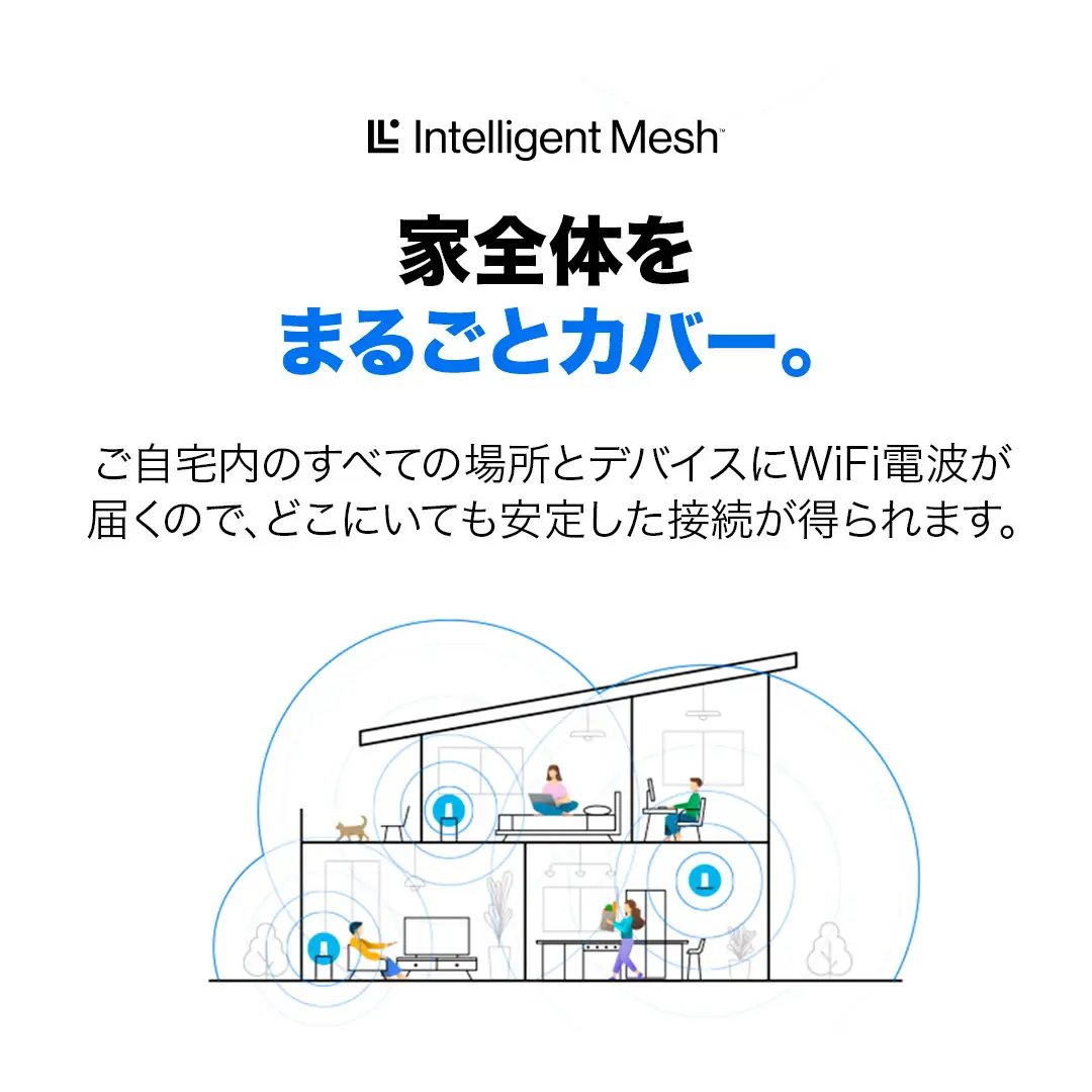 部屋の間取りやWiFiでカバーしたい範囲に応じて柔軟に複数台を組み合わせることが出来、iPhone/Androidのアプリで簡単設定が可能なインテリジェントメッシュ対応モデルを是非体験してください。