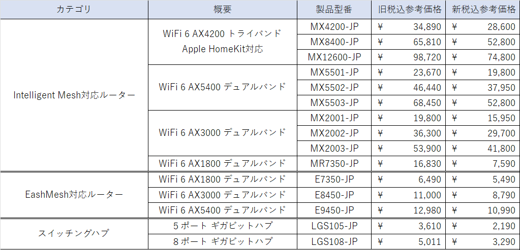 この度弊社創業35周年を記念して、Apple HomeKit対応のAX4200シリーズを含むWiFiメッシュシステム全モデルを対象に8月10日(木)より価格改定(値下げ)を実施します。全国大手家電量販店および、アマゾンLinksys公式ストア、リンクシスダイレクトオンラインストアよりお求めいただけます。