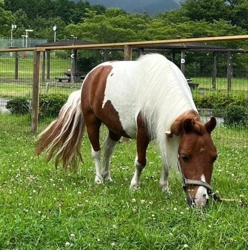 真っ白なたてがみと、ふさふさとしたしっぽがかわいいポニーもやってきます。「馬小屋 ポニーのせなか」(京都府亀岡市)様のご協力のもと実現しました。