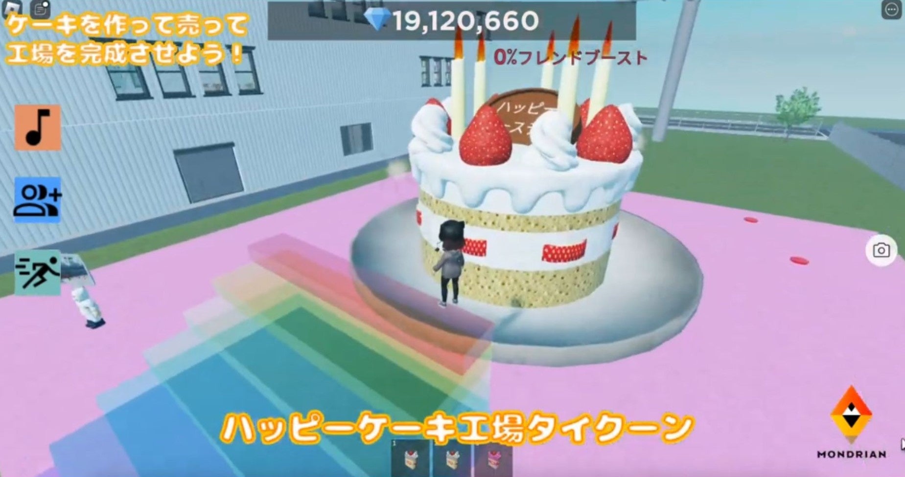 ゲーム・メタバース事業を主軸として展開する株式会社モンドリアン(本社 東京都中央区、代表取締役 角田拓志、以下「当社」)は、メタバース空間上での観光や体験型ゲームを通じ、地域の魅力や企業のPRにつなげる事業を始動します。その第一弾として、Robloxのゲーム「ハッピーケーキ工場タイクーン」をリリースいたしました。