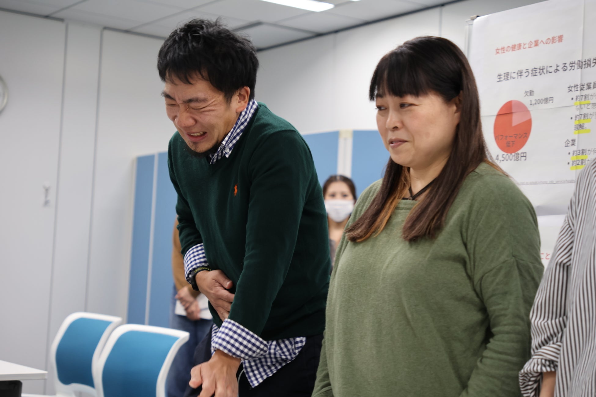 「弱・中・強と3段階体験しましたが、想像以上の辛さでした。個人差や慣れもあるのでしょうが、『強』については、これに耐えながら出社し、業務を行うことは考えられないというレベルの辛さでした。生理痛があるという知識はありますが、疑似とはいえそれを体感でき、性差の理解を深められるとても有意義な体験でした。是非多くの方に体験してもらいたいです。」