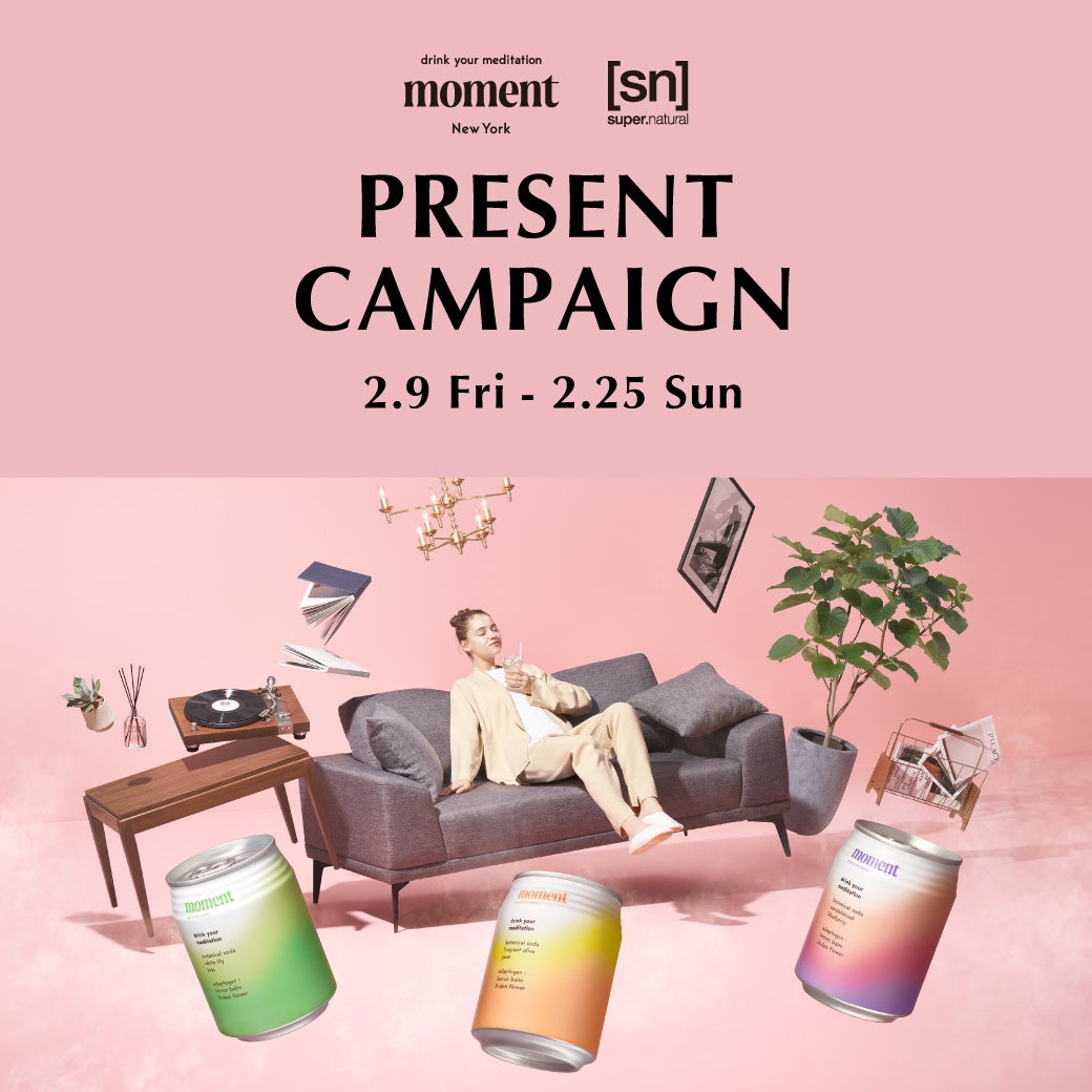 キャンペーン内容:[sn]公式オンラインストアで税込10,000円以上のお買い上げの方に、NY発リラクゼーションドリンク「モーメント」3缶セットをプレゼント