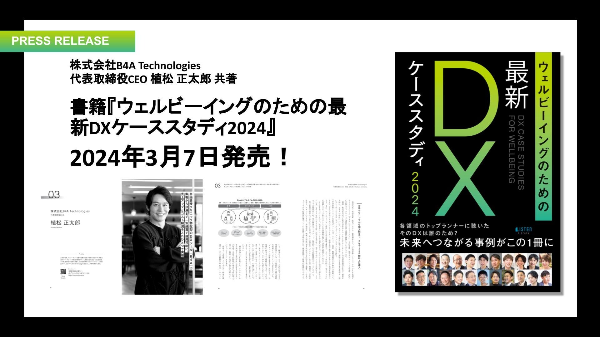 【3/7発売】自由診療クリニック特化型のDXツール『B4A(ビーフォーエー)』を提供する株式会社B4A Technologiesが『ウェルビーイングのための最新DXケーススタディ2024』を共著出版!