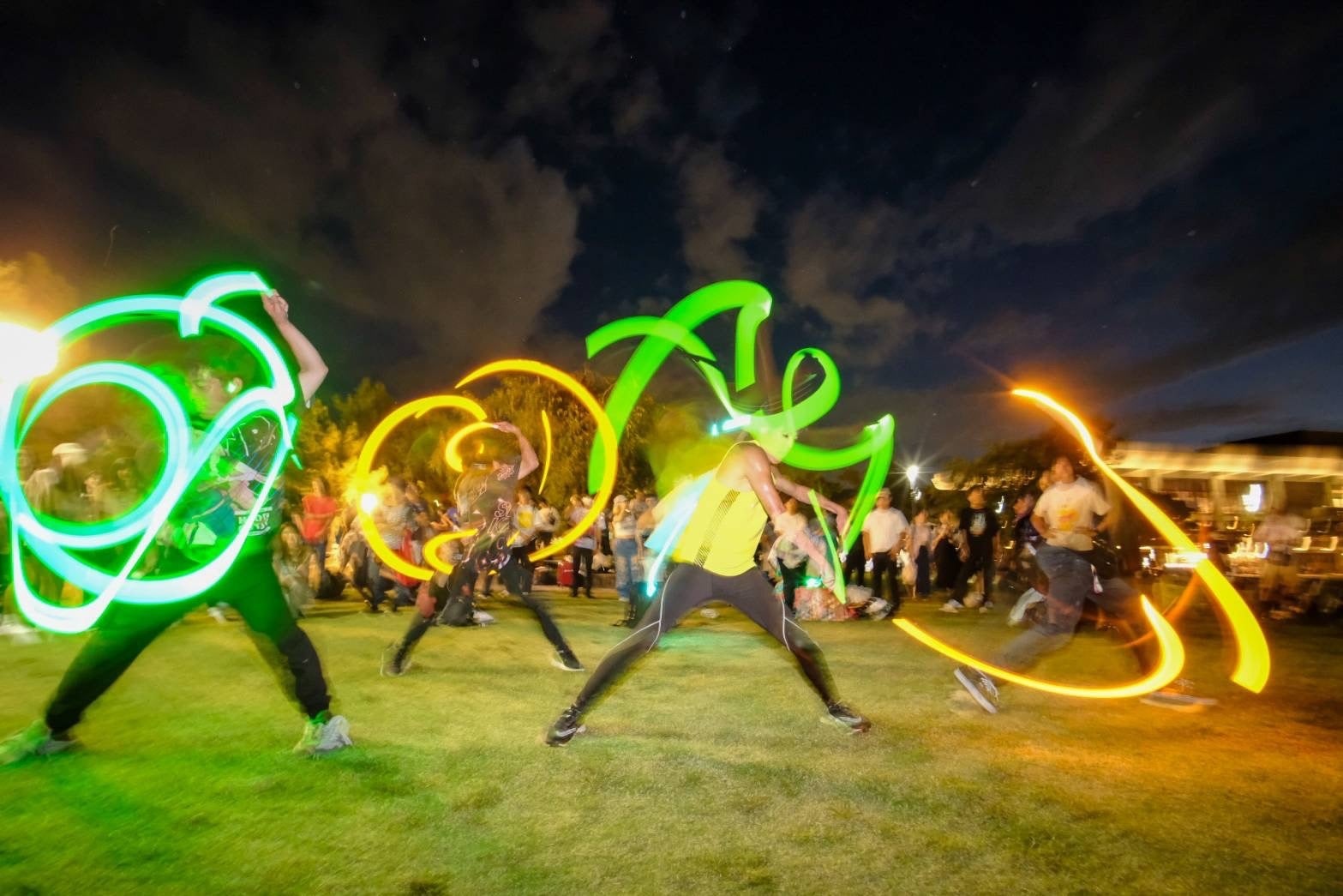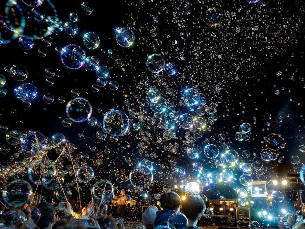 日が落ちるとナイトバブルショーも共演し、音と光の幻想的な空間を演出します。