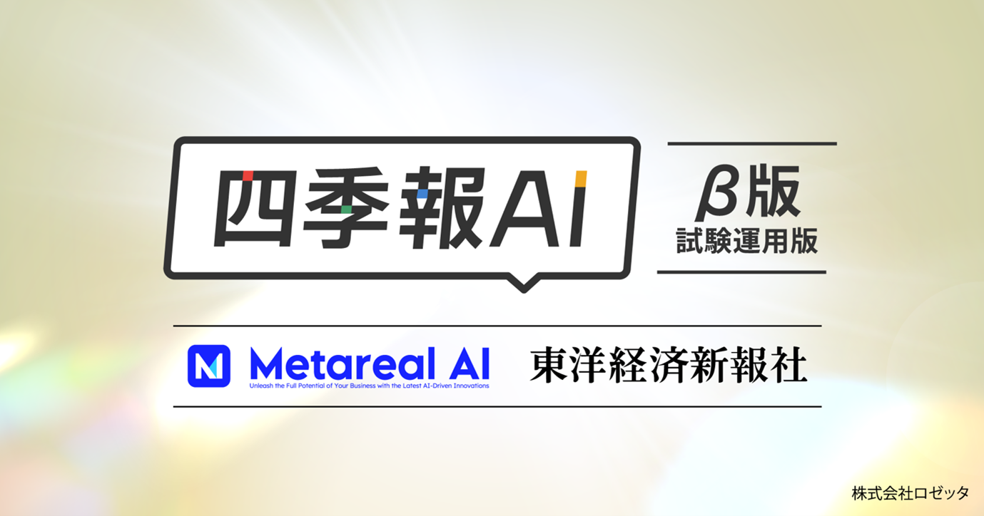 この度リリースする「四季報AI」ベータ版は、正式版リリース前の技術検証版としての位置付けとなっており、ご利用状況を見ながら精度の向上などを行ってまいります。