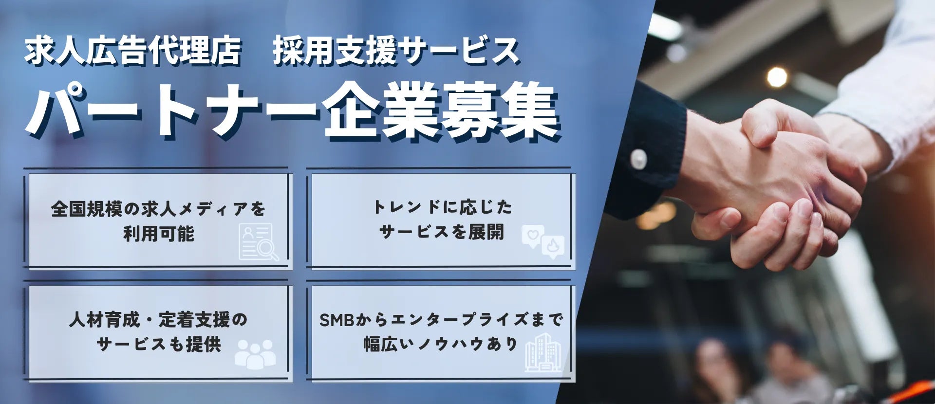 今回のパートナー募集は、採用支援の専門知識を有する法人様、または新規参入をご検討中の法人様と協力し、全国のクライアント企業が抱える課題を共に解決し、持続可能な成長を実現するためのものです。