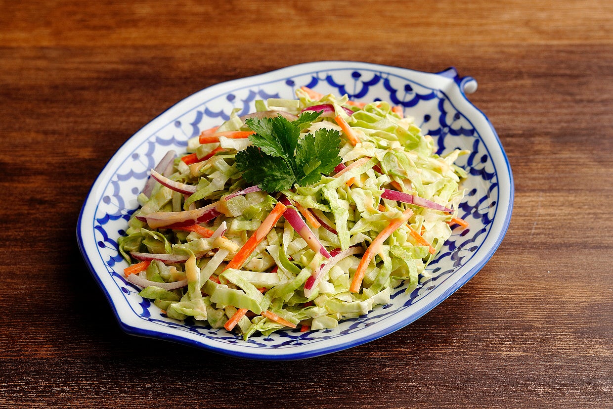 レモングラス、ガランガー、タマリンドなどのタイハーブの爽やかな香りと酸味を、クリーミーなドレッシング状に仕上げました。クリーミータイプドレッシングの優しい口当たりの後からナンプラーの旨味とチリのピリッとした辛味、そして爽やかなハーブの香りが追いかけてくることで余韻を残す美味しさです。