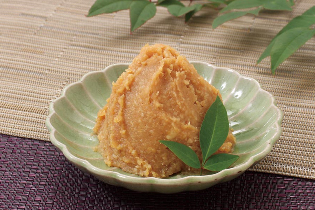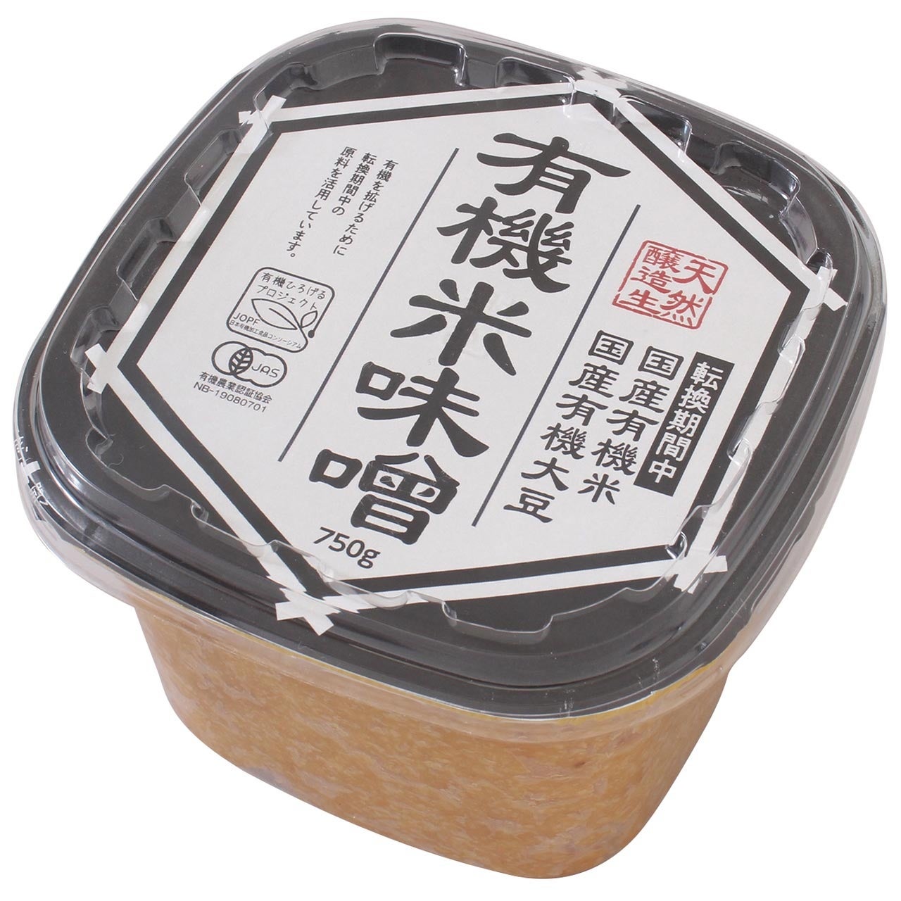 転換期間中有機農産物の国産有機米・国産有機大豆、にがりが残った塩を使い、加温はせずに約6ヶ月ゆっくりと発酵させた、酵母が生きている天然醸造の生みそです。米味噌は、大豆に米麹を加えて作られたお味噌です。