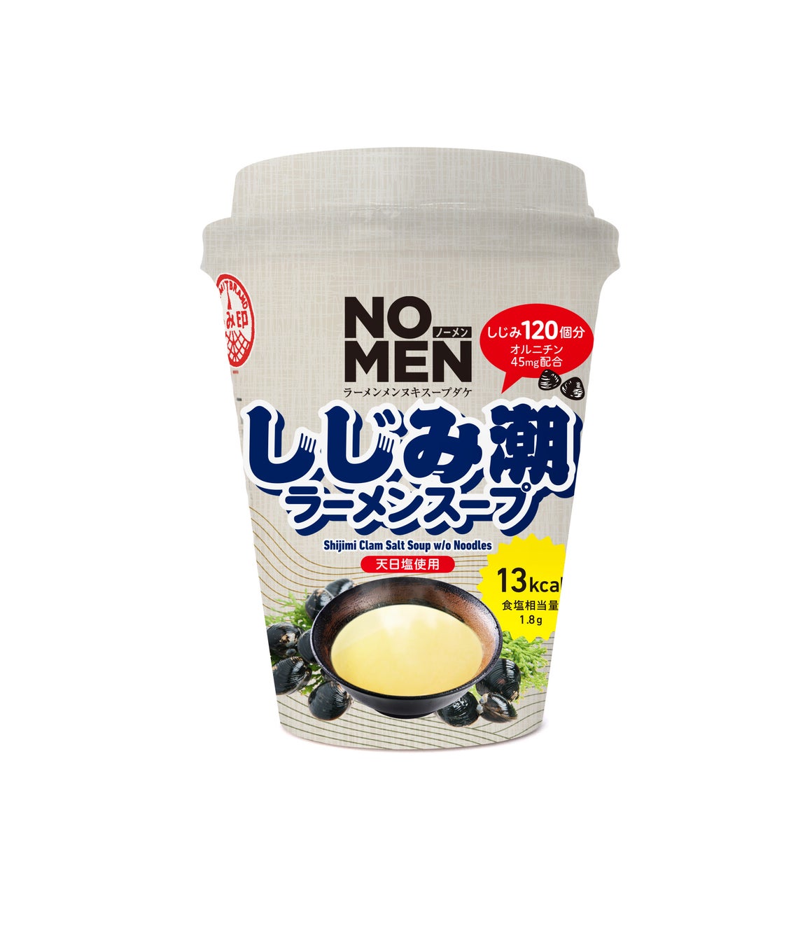 ラーメン店の背脂たっぷりな濃厚豚骨ラーメンを1杯約1600kcalと仮定すると、「NOMENあみ郎」はその1/20の80kcal。NOMENシリーズの中では最もハイカロリーな背徳系ながら、最低限の熱量で濃厚なおいしさをちょこっとだけ味わえるのがウリです。一方、「NOMENしじみ潮」は13kcal/杯と、