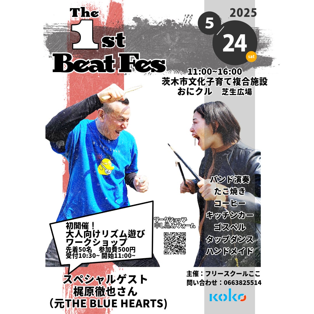 NPO法人ここ(事務所:大阪府吹田市、理事長:三科元明)は、2025年5月24日(土)に茨木市文化・子育て複合施設「おにクル」芝生広場(大阪府茨木市駅前3丁目9番45号)にて、音楽フェス「The 1st Beat Fes」を開催します。