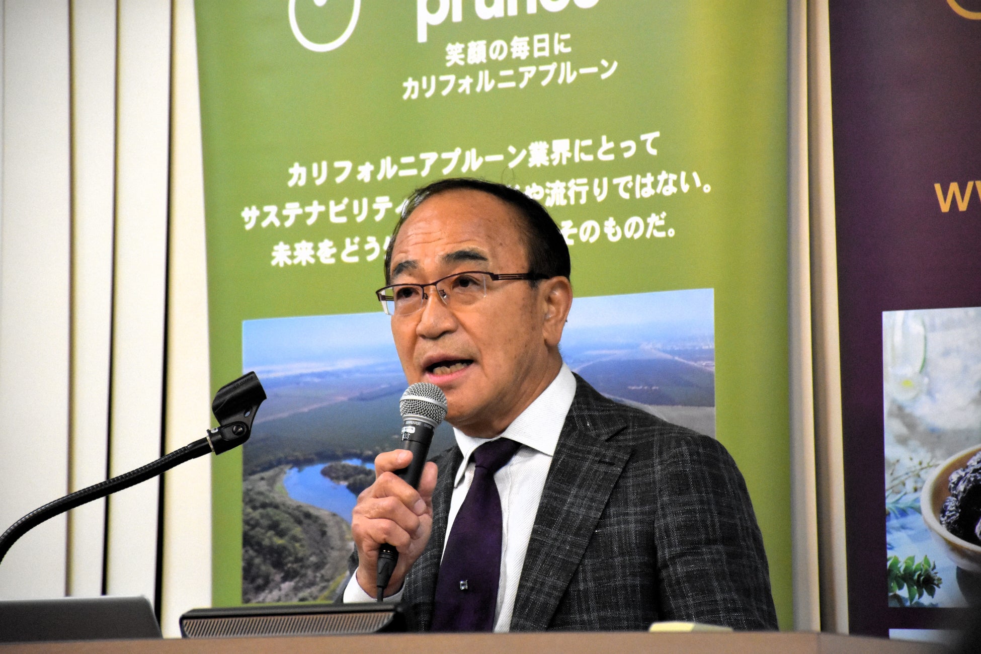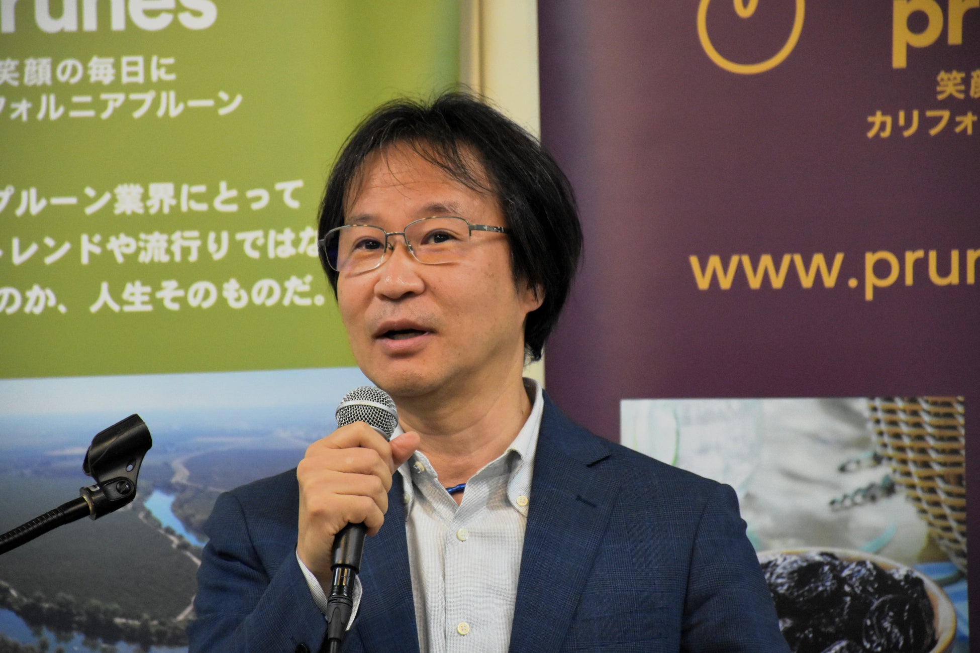 上西和弘先生の講演は、カリフォルニアプルーンの栄養価と健康効果に焦点を当てたものでした。主に3つの観点から、プルーンの価値を解説しました。