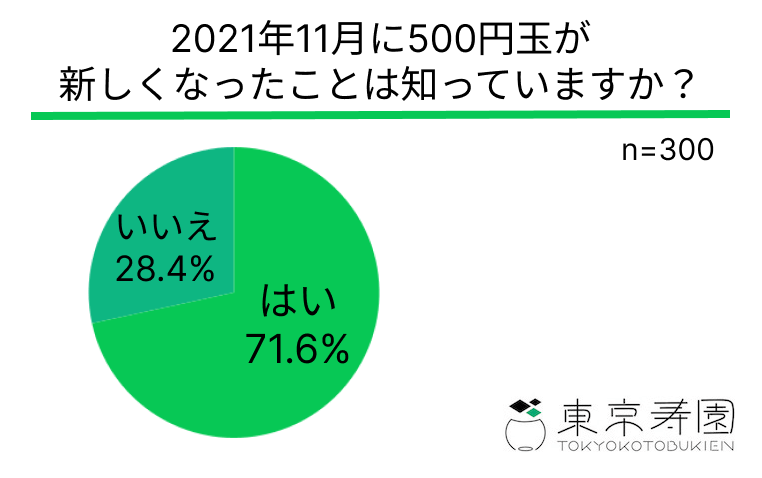 2021年11月に500円玉が新しくなったことを認知していない人は28.4%もいた!