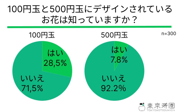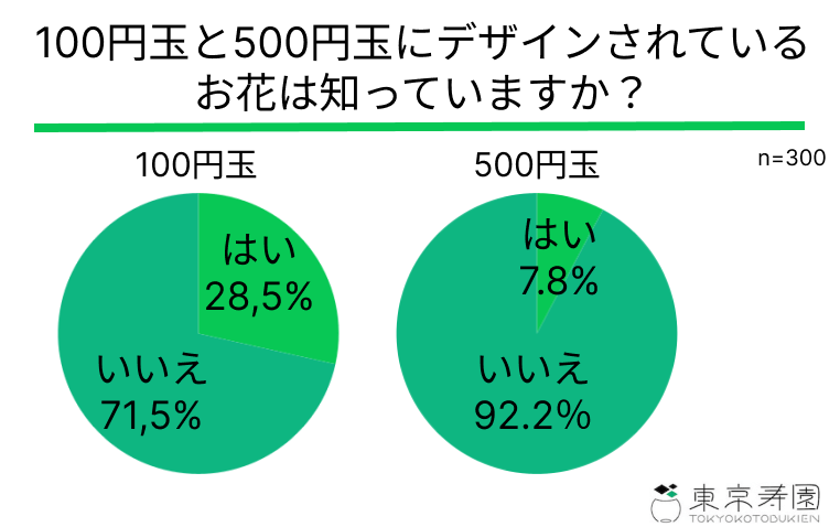 硬貨にデザインされているお花の認知度は100円玉が28.5%、500玉が7.8%という結果に!500円玉に関するアンケート調査を公開!