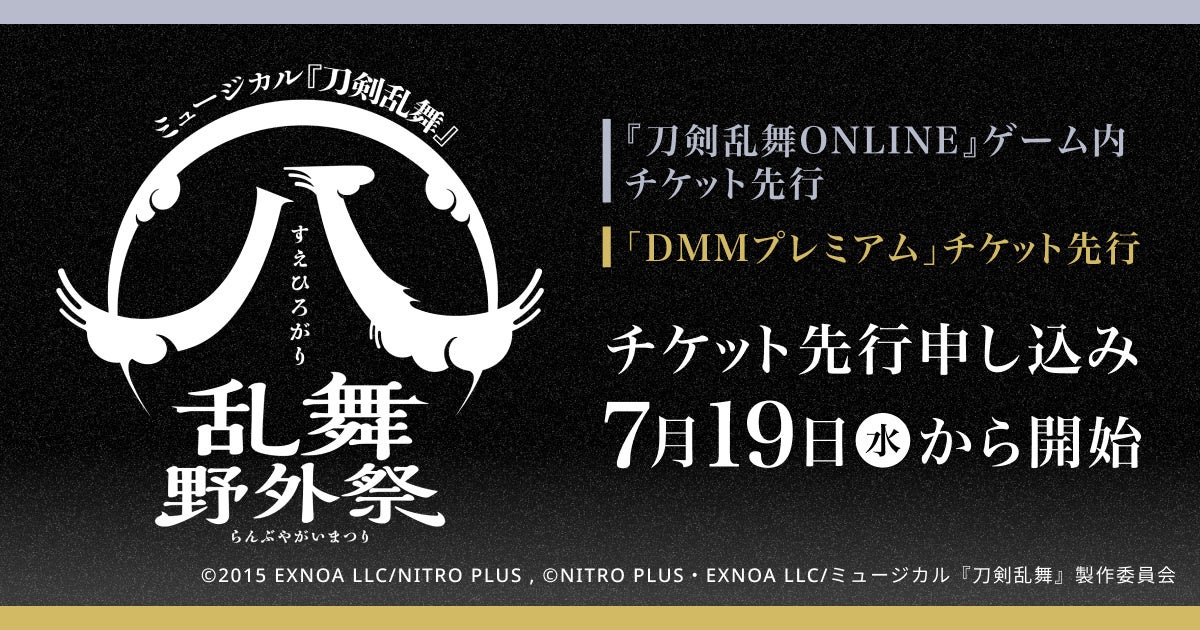 ミュージカル『刀剣乱舞』すえひろがり 乱舞野外祭『刀剣乱舞ONLINE』ゲーム内チケット先行ならびに「DMMプレミアム」チケット先行実施のご案内