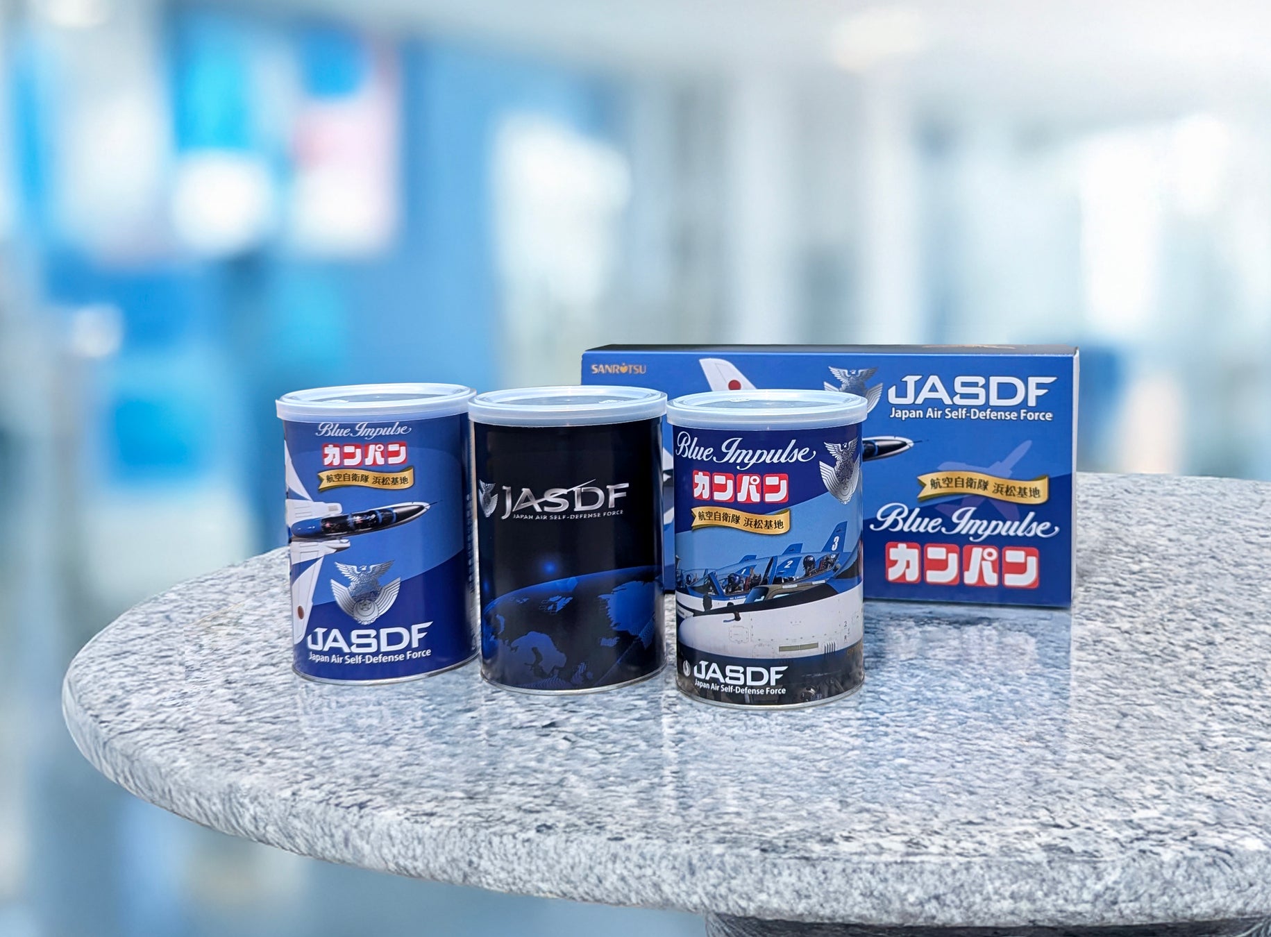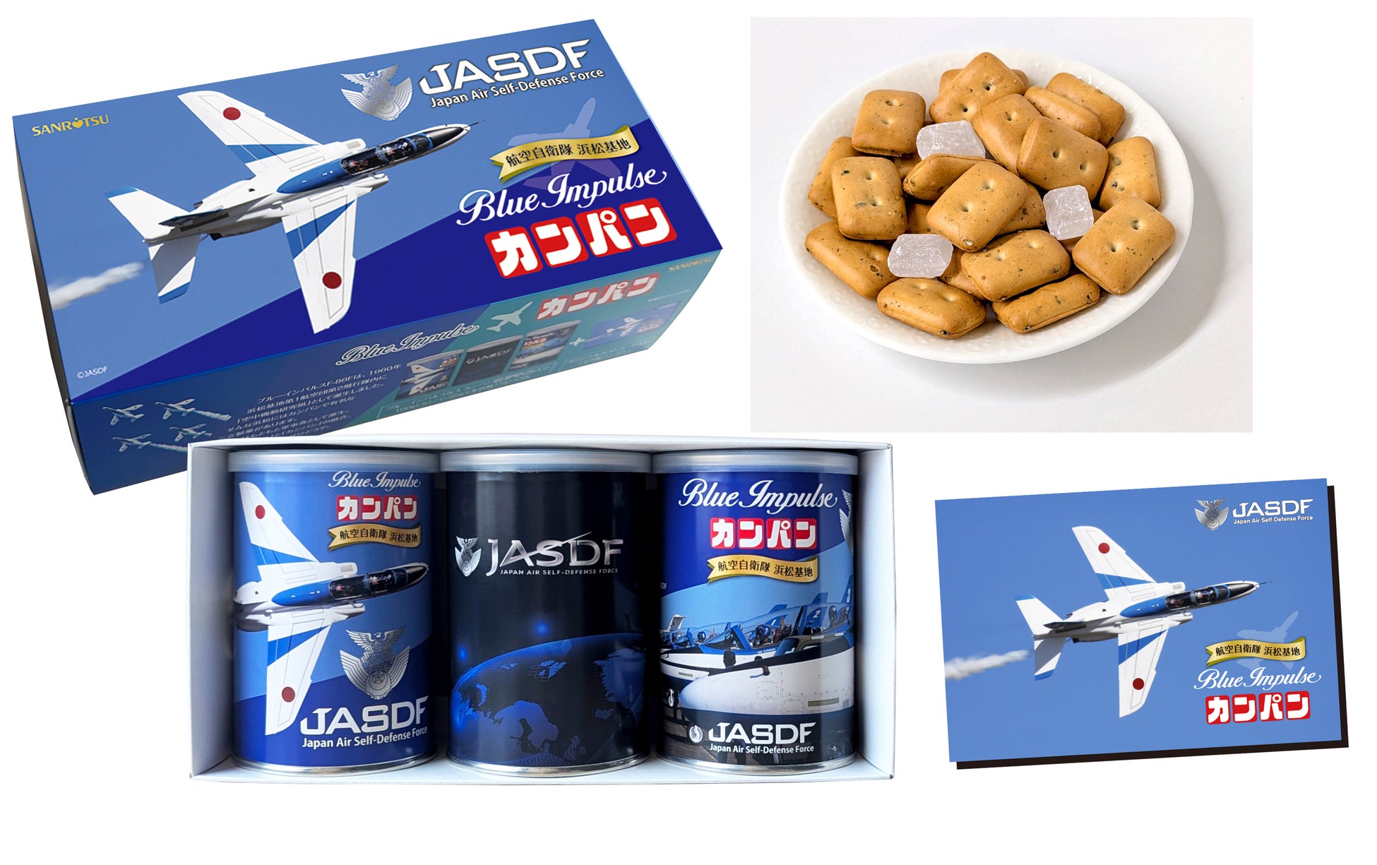ブルーインパルス×三立製菓の夢のコラボ!ブルーインパルスデザイン 缶入カンパン&源氏パイ カフェオレ味が続々登場!