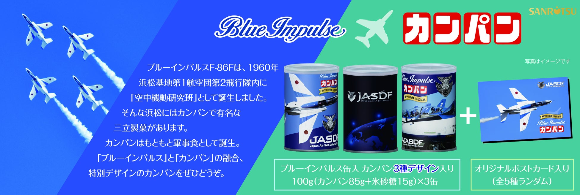 空自ファン、ブルーインパルスファンの方々にとびきりスペシャルなお菓子を、ご当地三立製菓よりお届けいたします。
