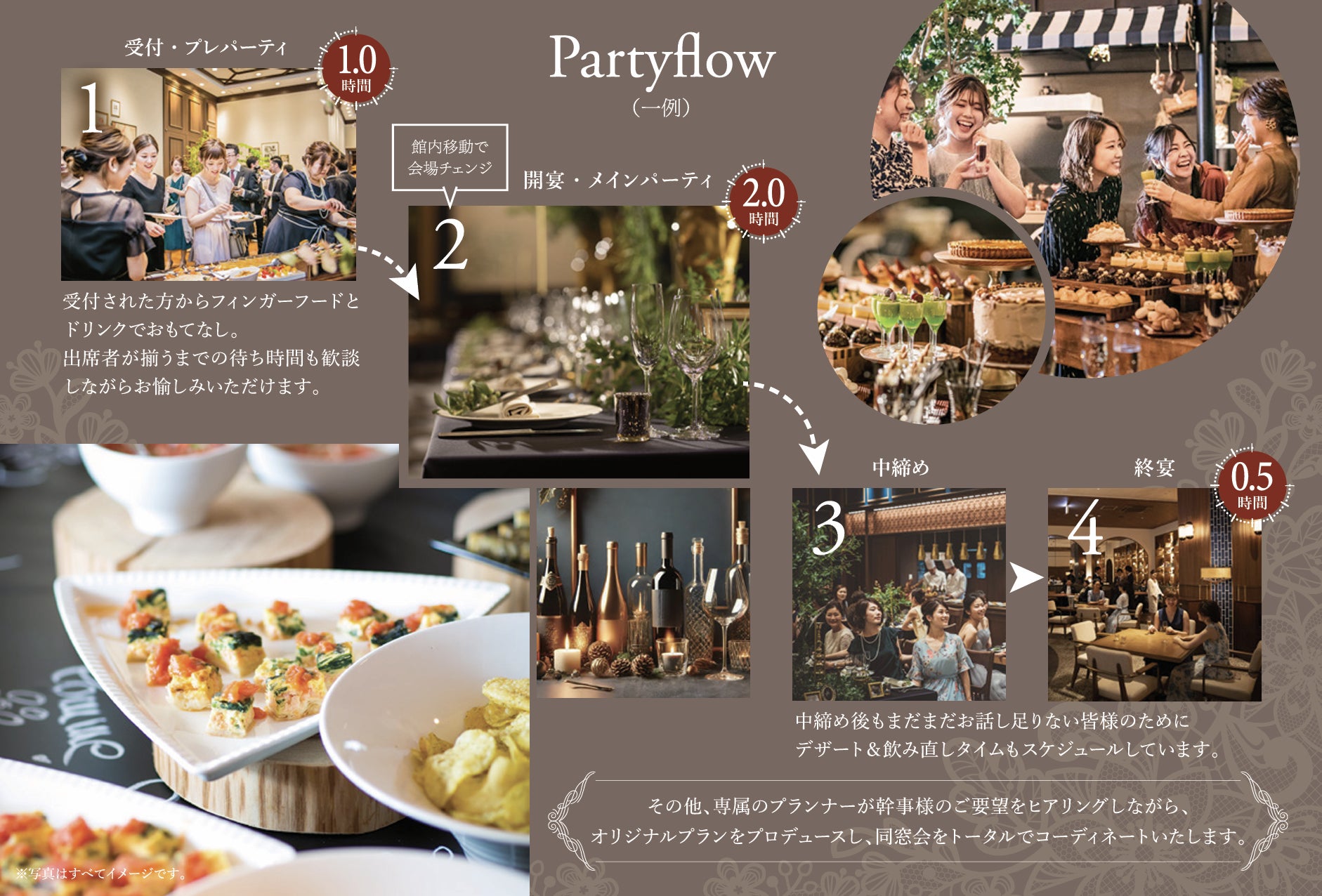久々に会うご友人とはゆっくり語り合いたい、そんなご希望を叶えるべく、たっぷり時間を使っていただける「3.5時間プラン」をご提案。結婚式のような動きのある演出で、参加者の皆様のワクワク感を高めます。