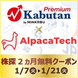 リニューアルを記念したスペシャルクーポンとして、通常は提供していない株探プレミアムの2ヶ月無料クーポンを先着50名様に配布いたします。最長1月21日まで取得可能ですので、ぜひお早めに取得下さい。