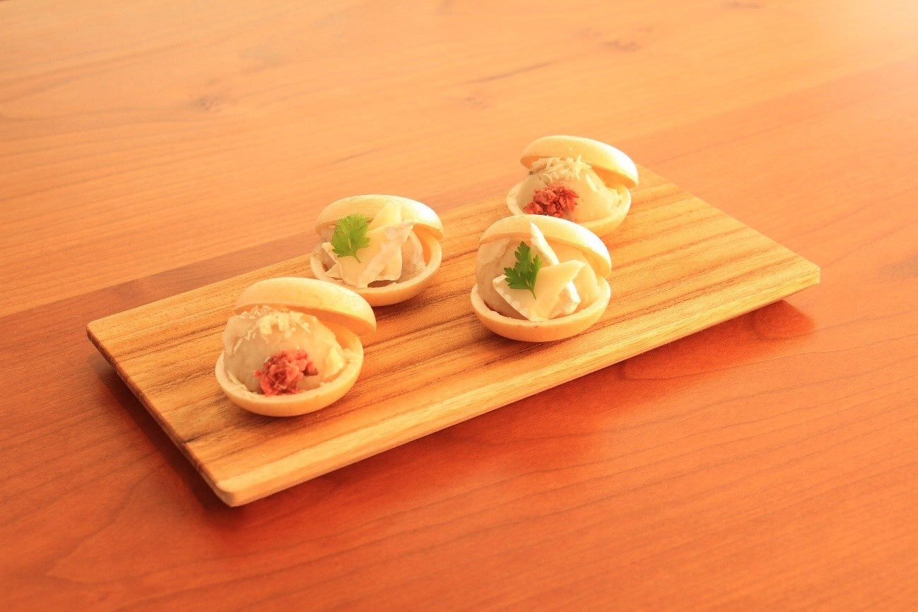 (桜の香りとチーズの濃厚なうまみを組み合わせた「桜あんとチーズのおつまみ最中」)