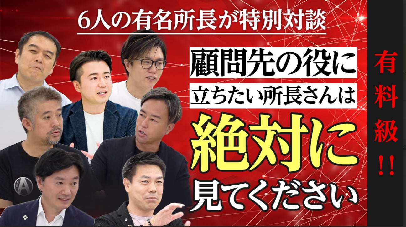 本動画では、税理士業界で活躍している6事務所の代表を集め、税理士事務所が顧問先に何ができるか?やどのような付加価値を提供できるか? についても話しております。