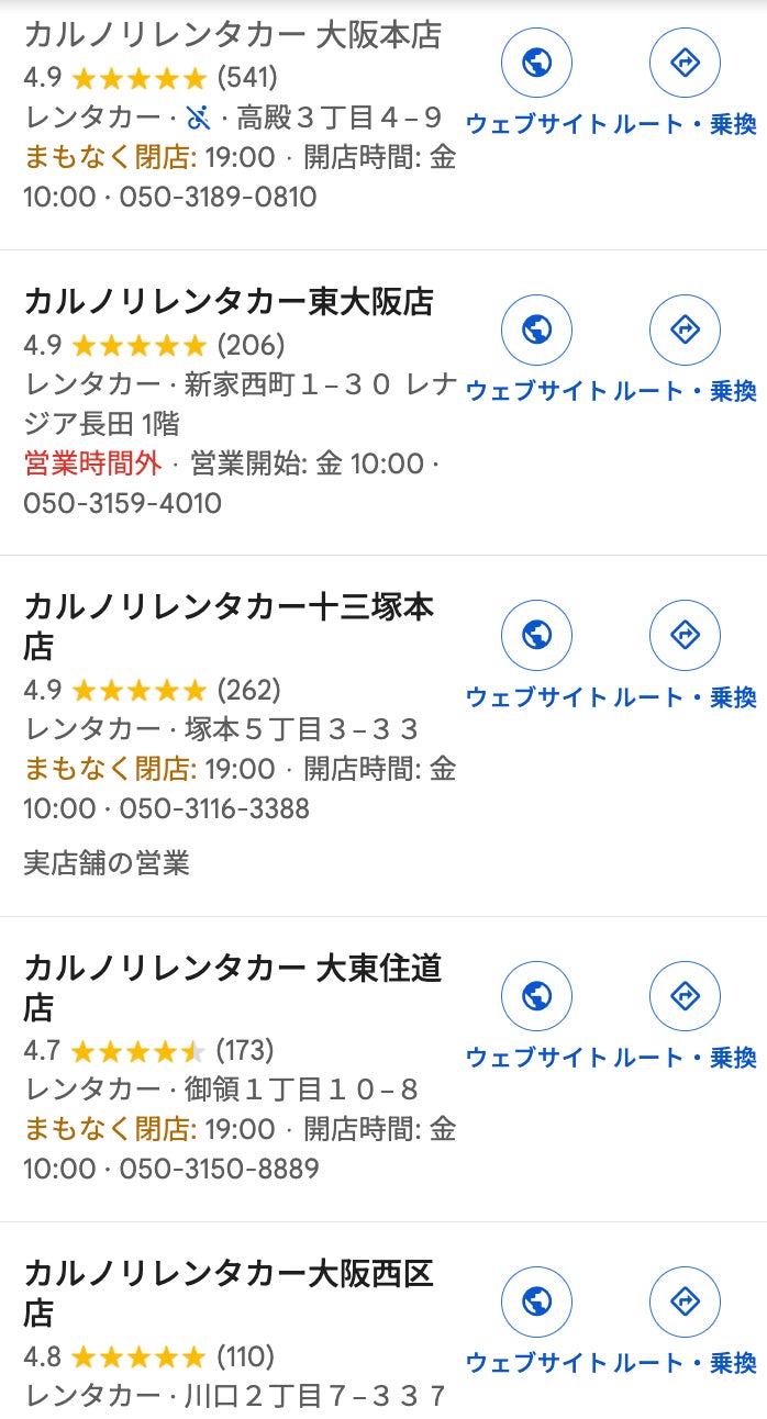 カルノリレンタカーは格安レンタカーですが『安かろう悪かろう』は徹底排除しています。格安な分、新車をレンタカーとして提供することは難しいですが、それ以外の『接客サービス』には日本一力を入れて取り組んでいます。その結果、Googleの口コミにおいて、お客さまから高評価な口コミをいただいています。