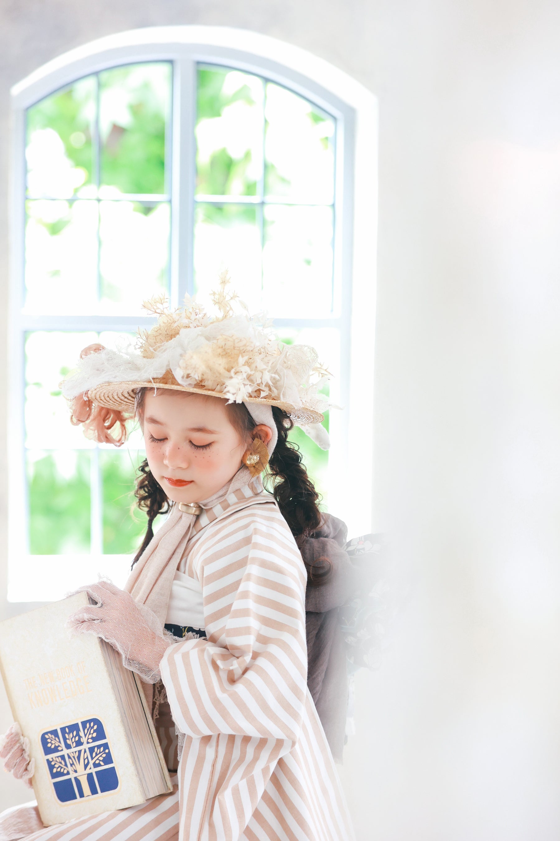 ライフスタジオ新横浜店では生地から取り寄せてオリジナルで作成した着物から、インテリアに似合うデザインを厳選したデザインの着物まで様々ご用意があり、おしゃれで可愛い着物で七五三撮影が出来ます。ナチュラル・アンティークイメージのインテリアにぴったりと似合う着物とスタイリングで楽しい思い出とともに記念写真を残しましょう。