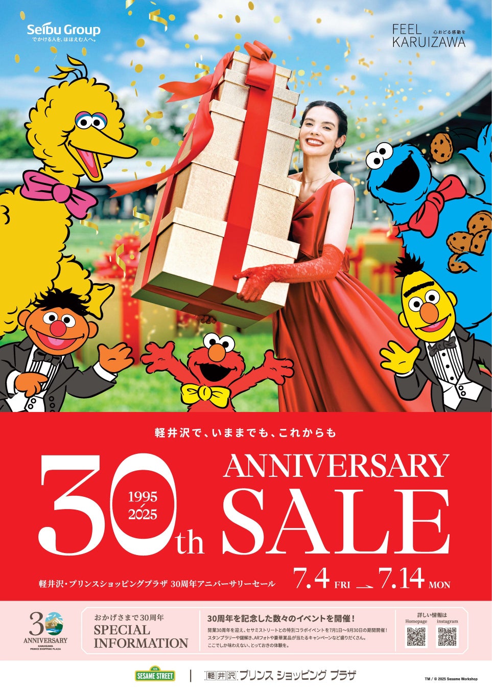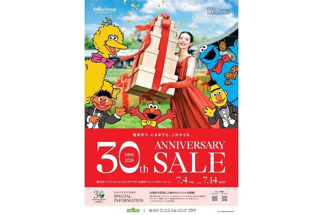 株式会社西武不動産プロパティマネジメント(本社:埼玉県所沢市、代表取締役社長:齊藤 朝秀)が運営するリゾート型ショッピングモール「軽井沢・プリンスショッピングプラザ」(所在地:長野県北佐久郡軽井沢町)は、今年7月、開業30周年を迎えるにあたり、50年以上にわたって世界中で愛されている「セサミストリート」とのコラボレーションイベント等を開催いたします。