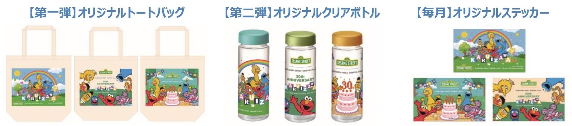 当日のお買いあげ合計30,000円(税込・合算可)以上の方へ、30周年記念限定セサミストリート オリジナルノベルティをプレゼントします。第一弾はオリジナルトートバッグ、第二弾はオリジナルクリアボトルを予定しています。