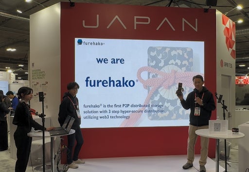CES2025では、クラウドのデータストレージを使わず、機密文書や動画、画像ファイルを多数の意味のないバイナリデータに分割し、暗号化をかけ、それをノードにつながった分散コンピュータに保存し、オリジナルファイルを削除することで、ハッカーによる攻撃を受けてもオリジナルファイルの複合化が極めて困難な、非サーバ型機密分散保存を実現する ハイパー・セキュア・ストレージ技術