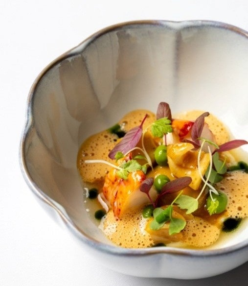 ◆甘鯛の松笠焼き 帆立 百合根 サワークリーム 白味噌 タラゴン(NICE minamiaoyama)