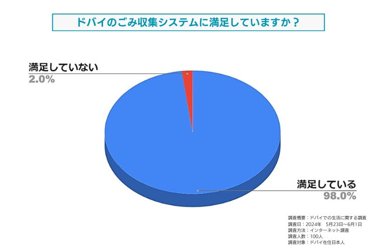 弊社が運営する『ドバイ総合研究所』は、ドバイ在住の日本人を対象に「ドバイのごみ収集システムに対する満足度」についてアンケート調査を実施しました。結果は以下の通りです。