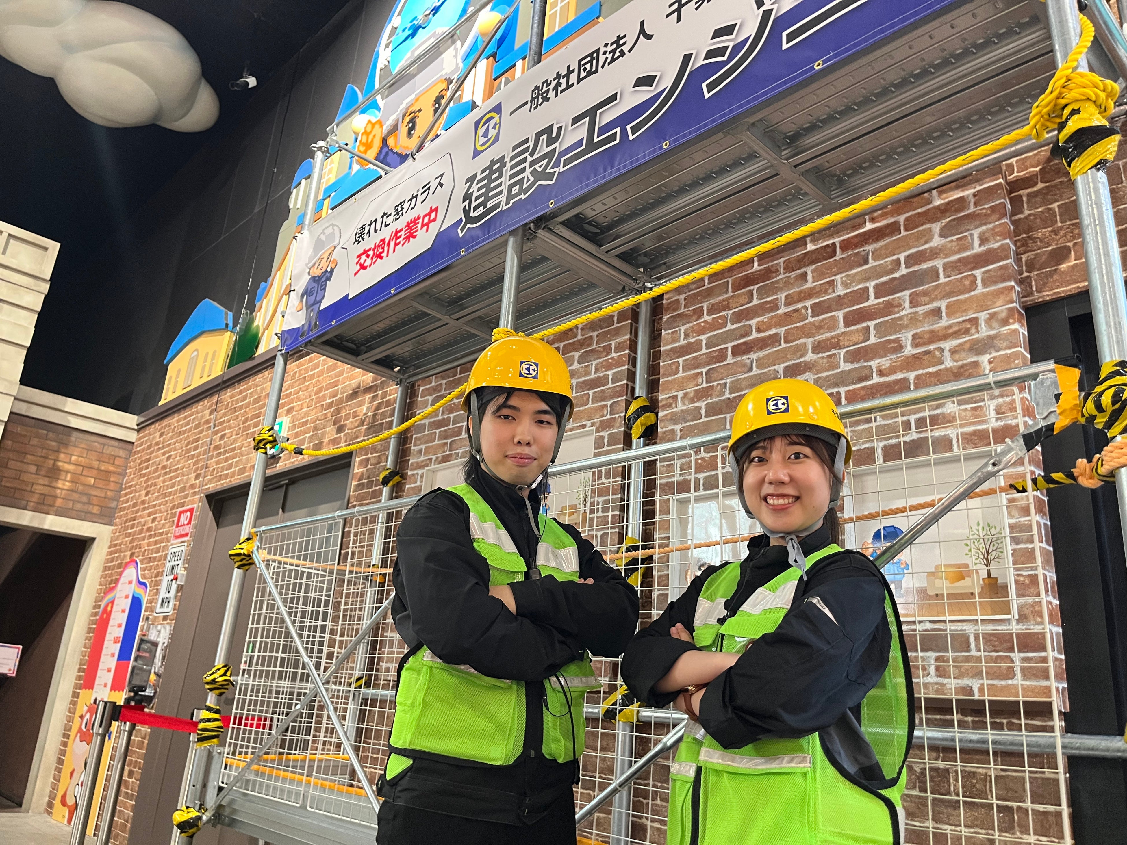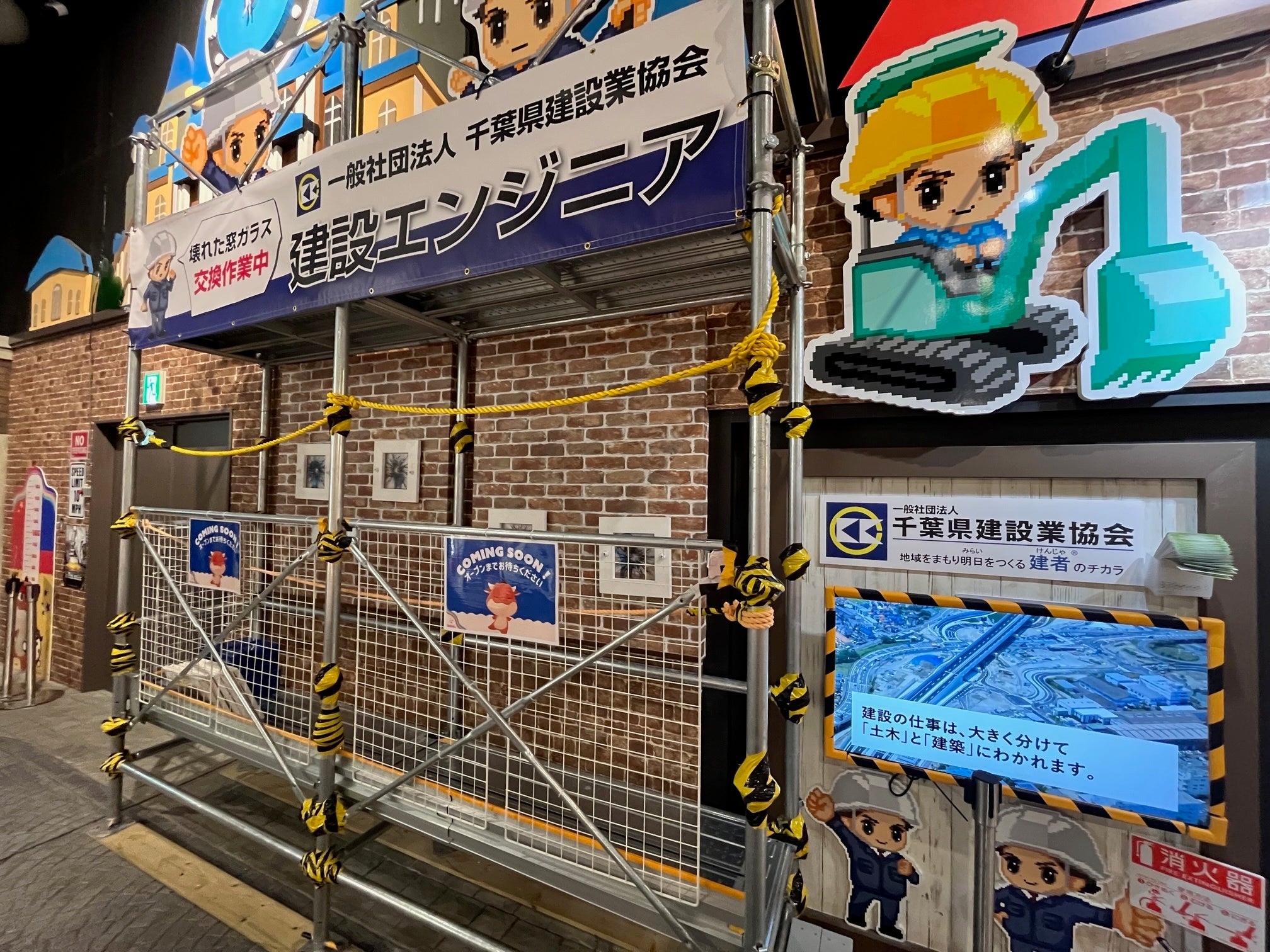 イオンモール キッズドリーム合同会社は、一般社団法人 千葉県建設業協会と連携し、未来を担うお子さまたちに地域を守る建設業の技術や創造力に触れていただくことを目的に、2021年12月に「建設エンジニア」の仕事体験をスタート。地震や災害時における復旧・復興事業の重要な役割を果たす仕事内容で、工事現場のチームワーク、コミュニケーションの大切さを体験の中で学ぶアクティビティとして1か月間の期間限定でオープンしました。その後、2022年12月からは常設の仕事体験アクティビティとして、道路にあるガレキの撤去をして町の道路を復旧させるストーリーを展開。オープン以来、1万人以上のお子さまが体験し、ご好評いただいております。この度、足場にのぼって壊れた窓ガラスを交換するストーリーにリニューアルして再オープンします。