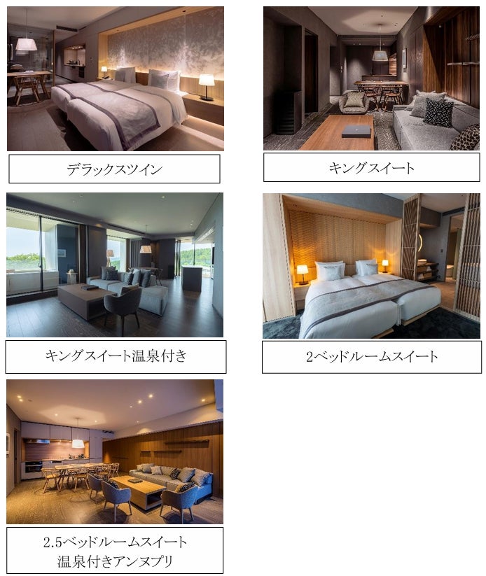 客室タイプ:①デラックスツイン ②キングスイート ③キングスイート温泉付き ④2ベッドルームスイート ⑤2.5ベッドルームスイート温泉付きアンヌプリ