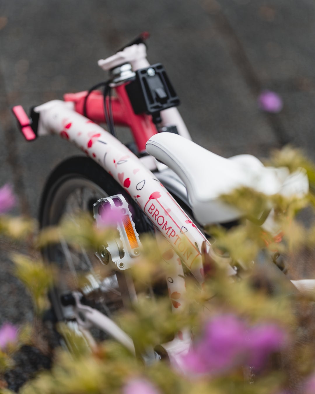 軽量で持ち運び可能、折りたたみ可能なブロンプトンの実用性をすべて備えながら、そのユニークで桜をモチーフしたユニークで美しいデザインがあなたの春を彩ります。