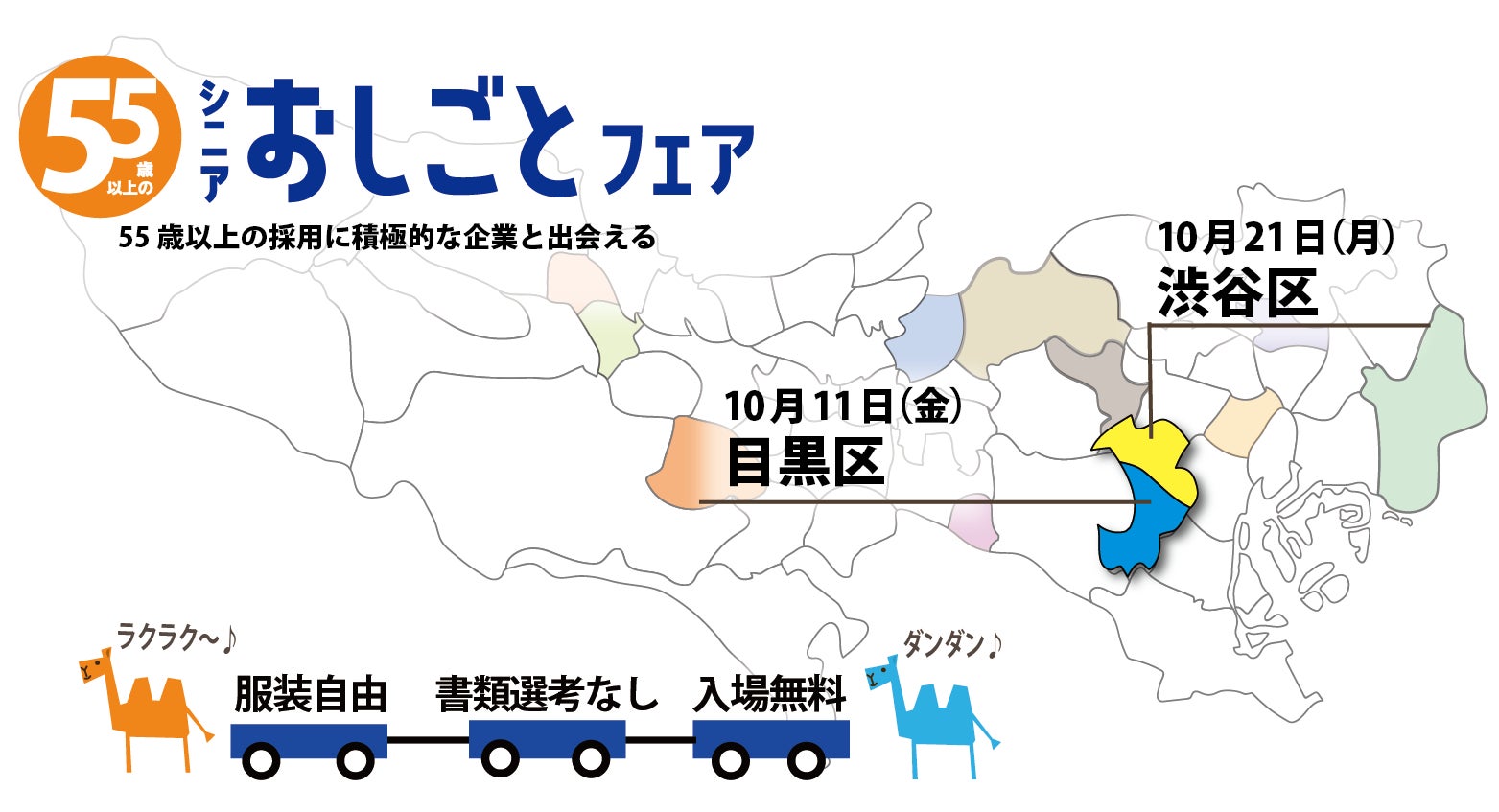 公益財団法人東京しごと財団(所在地:東京都千代田区)は、55歳以上の方を対象とした就業支援イベント 「シニアおしごとフェア」を、2024年10月11日(金)に目黒区と2024年10月21日(月)渋谷区で開催いたします。