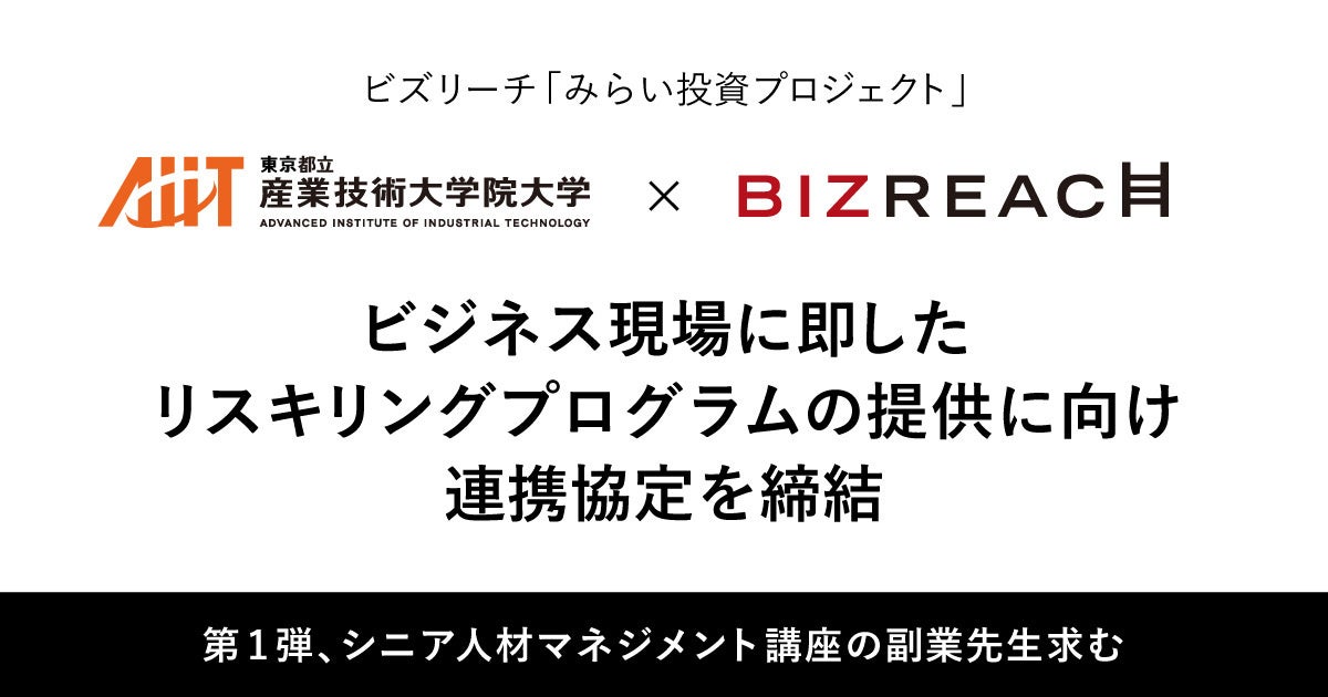 株式会社ビズリーチ(所在地:東京都渋谷区/代表取締役社長:酒井哲也 以下、当社)は、ビジネスプロフェッショナルが学び続ける環境・仕組みづくりや、学びを通じたビジネスプロフェッショナルのキャリア形成に貢献する産学連携のあり方を体現することを目的に、東京都立産業技術大学院大学(所在地:東京都品川区/学長:橋本洋志)と連携協定を締結します。