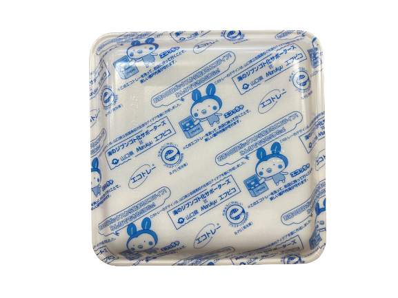 弊社では、豊かで美しい私たちの海を守るために、岩国高校生徒が考案した、海洋プラごみ削減を促すオリジナルデザインの食品トレーを採用しています。
