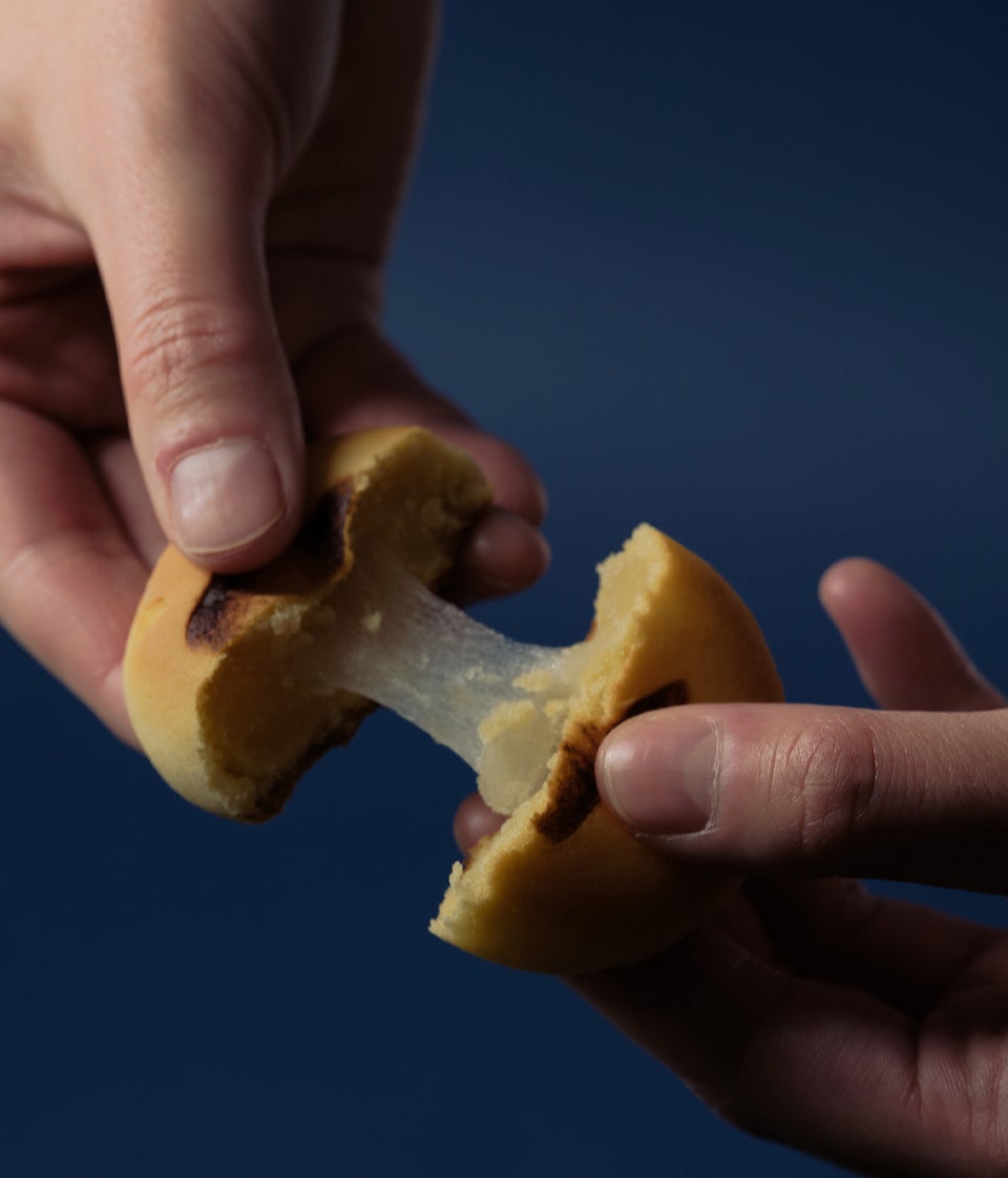 創業90年の老舗菓子屋「森八大名閣」が、新しい発想で福井の魅力を発信する「ホホホ屋 by森八大名閣」。今回は羽二重餅とみるく饅頭を組み合わせた「竜のあしあと」を販売いたします。濃厚でなめらかなミルクあんがたっぷり詰まったお饅頭に、もっちり柔らかな羽二重餅を挟んで焼き上げました。そのままでも美味しいですが、レンジで20秒ほど温めると、餅のねっとりとした食感とミルクの風味が一層引き立ちます。