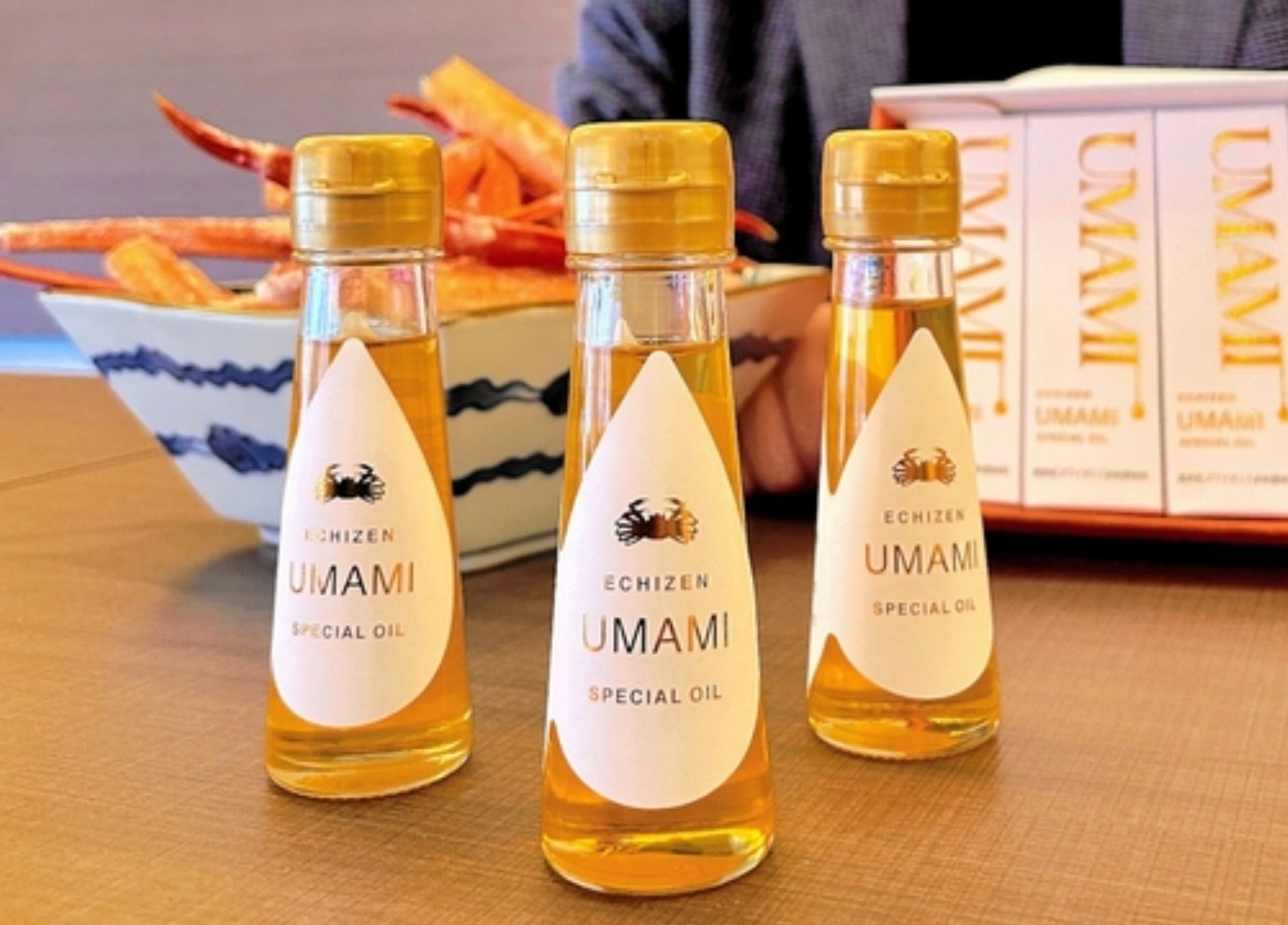 福井県内の複数事業者が連携し、県産ベニズワイガニを使った調味オイルを商品化しました。むき身加工後の殻を油で揚げ、旨みを抽出した調味油は、チャーハン、ラーメン、スープ、炒め物、餃子のたれなどに加えるだけで、上品な風味をプラス。甲殻類特有の香りが食欲をそそり、深みのある味わいが料理を引き立てます。