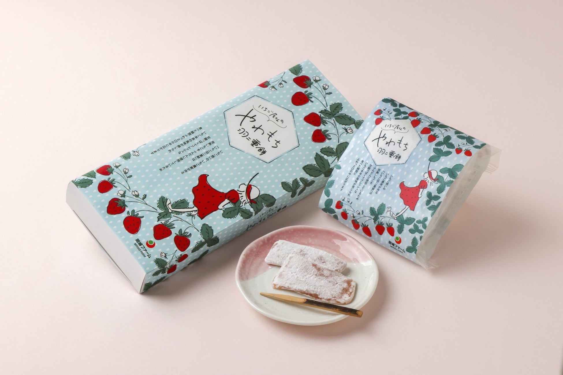 福井県越前市の農家が営む「明城ファーム」。今回販売するのは「いちご屋さんのやわもち羽二重餅」。明城ファームの完熟いちごを煮詰めたジャムを練り込んだ羽二重餅は、いちごの風味と食感がしっかりと感じられます。パッケージも可愛く仕上げた、自慢の一品です。