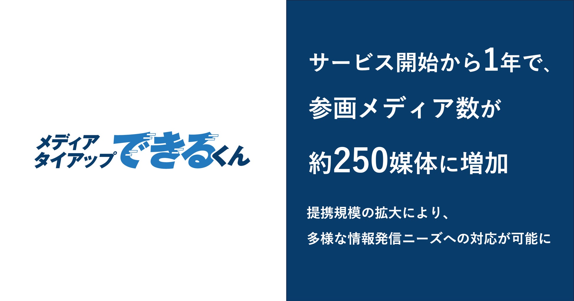 メディアタイアップできるくん、サービス開始から1年で参画メディア数が約250媒体に増加