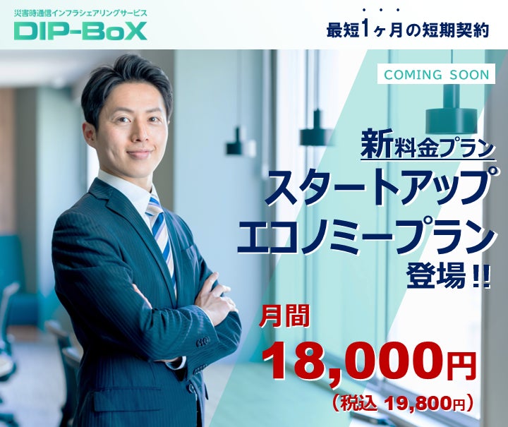 災害時通信のBCPサービス「DIP-BoX」に“導入しやすい1ヶ月プラン”が新登場
