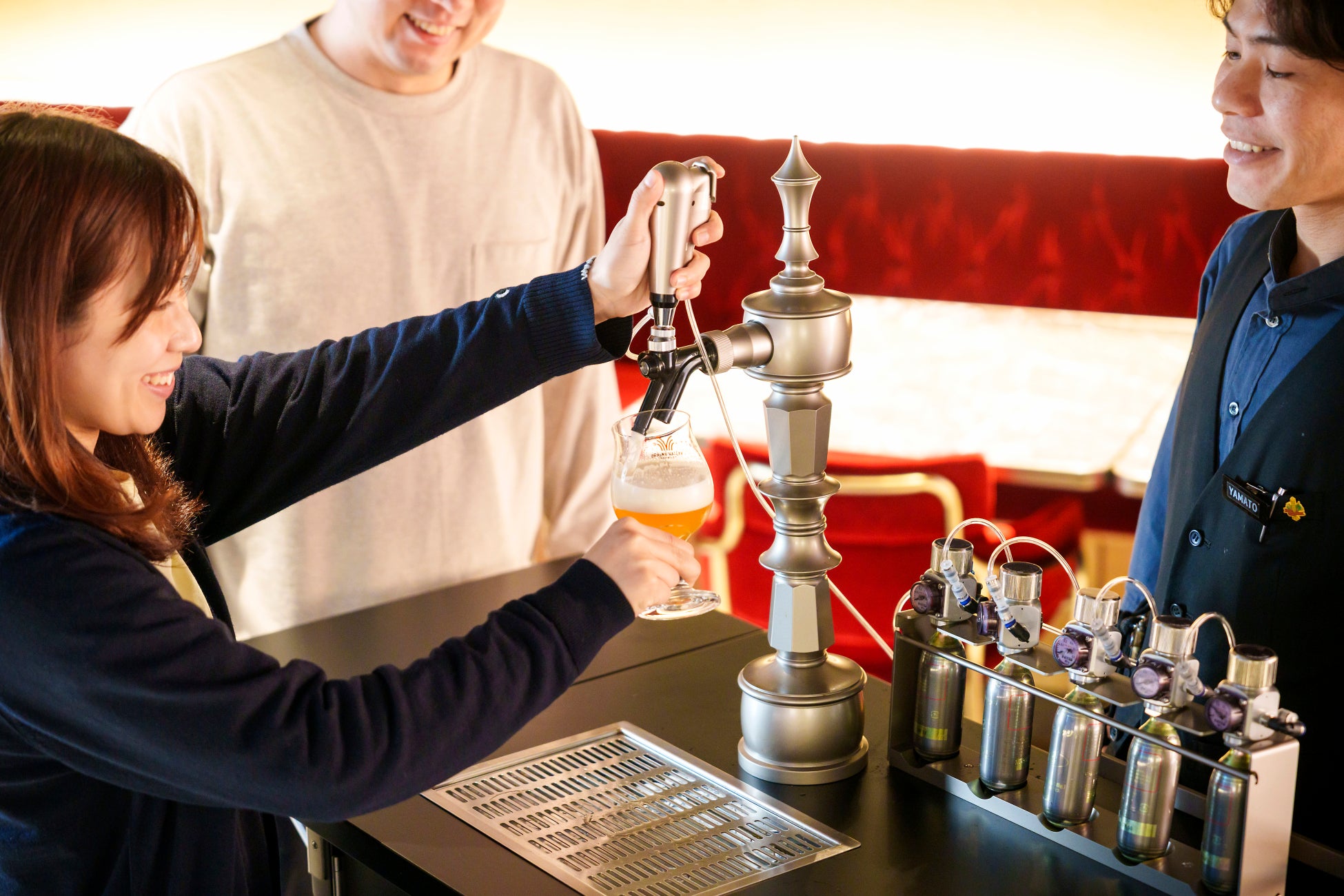 ⑤ “スゴ泡”タップ搭載の特注ワゴン式サーバーが新登場!お客様ご自身でビールの注ぎ体験ができるコースが楽しめる