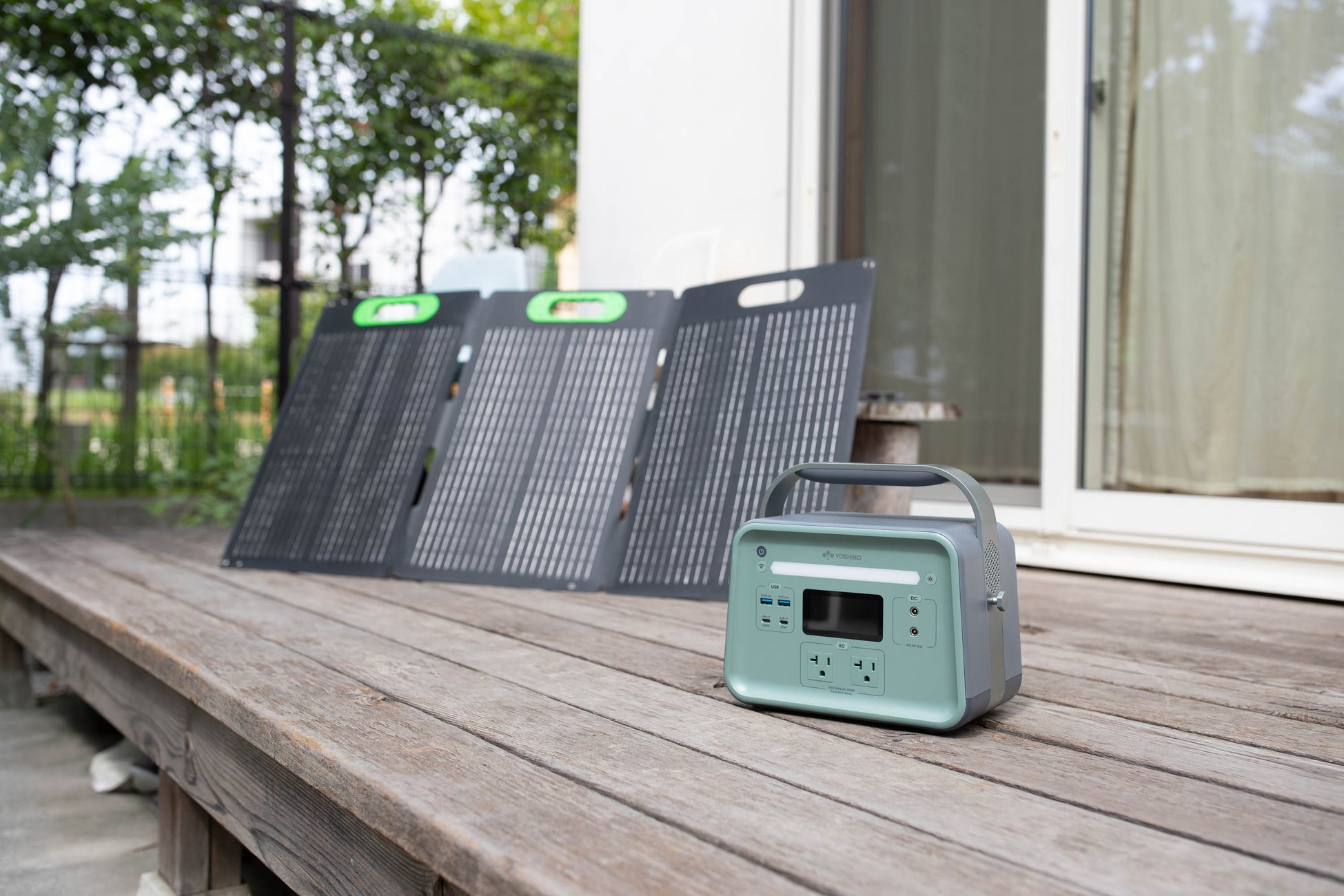 YOSHINOのポータブル電源は、全機種でソーラーパネルを利用した充電に対応。