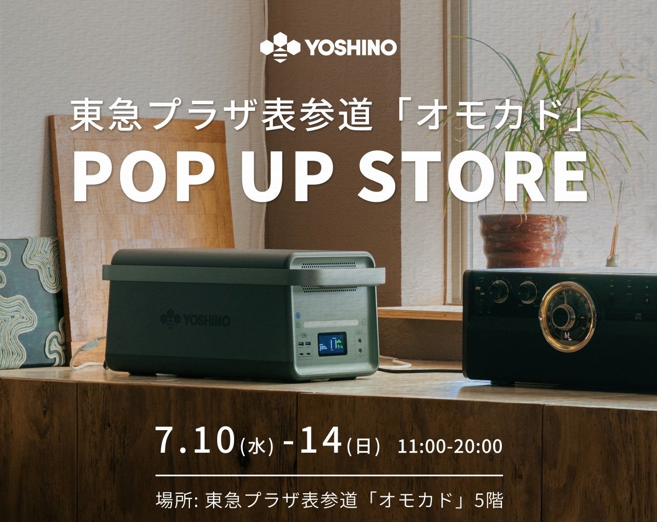 株式会社ヨシノパワージャパン(東京都文京区、以下YOSHINO)は世界初の固体電池を採用したポータブル電源や、ソーラーパネルを展開しています。2024年7月10日(水)~14日(日)の5日間でポップアップストアを原宿の東急プラザ表参道「オモカド」で開催します。固体電池を搭載したポータブル電源を実際に触って試せるだけでなく、SNS投稿でのプレゼントキャンペーンなども開催します。